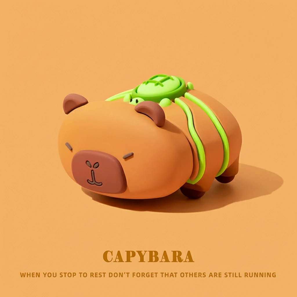 • Bonus Acrylic Charm: Every case comes with a high-quality, clear acrylic keychain. The charm features an adorable illustration of the capybara cheerfully riding on the turtle’s back—a perfect match for the case design.