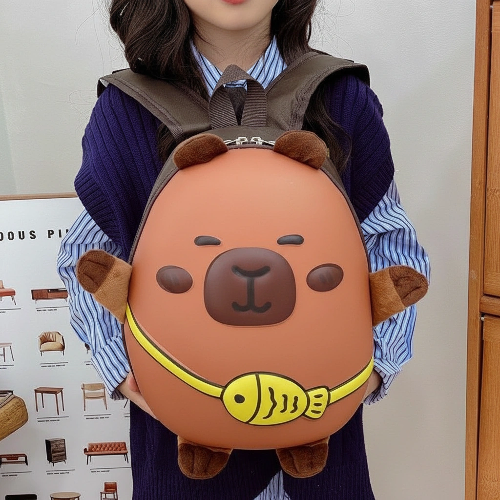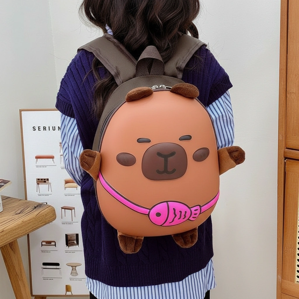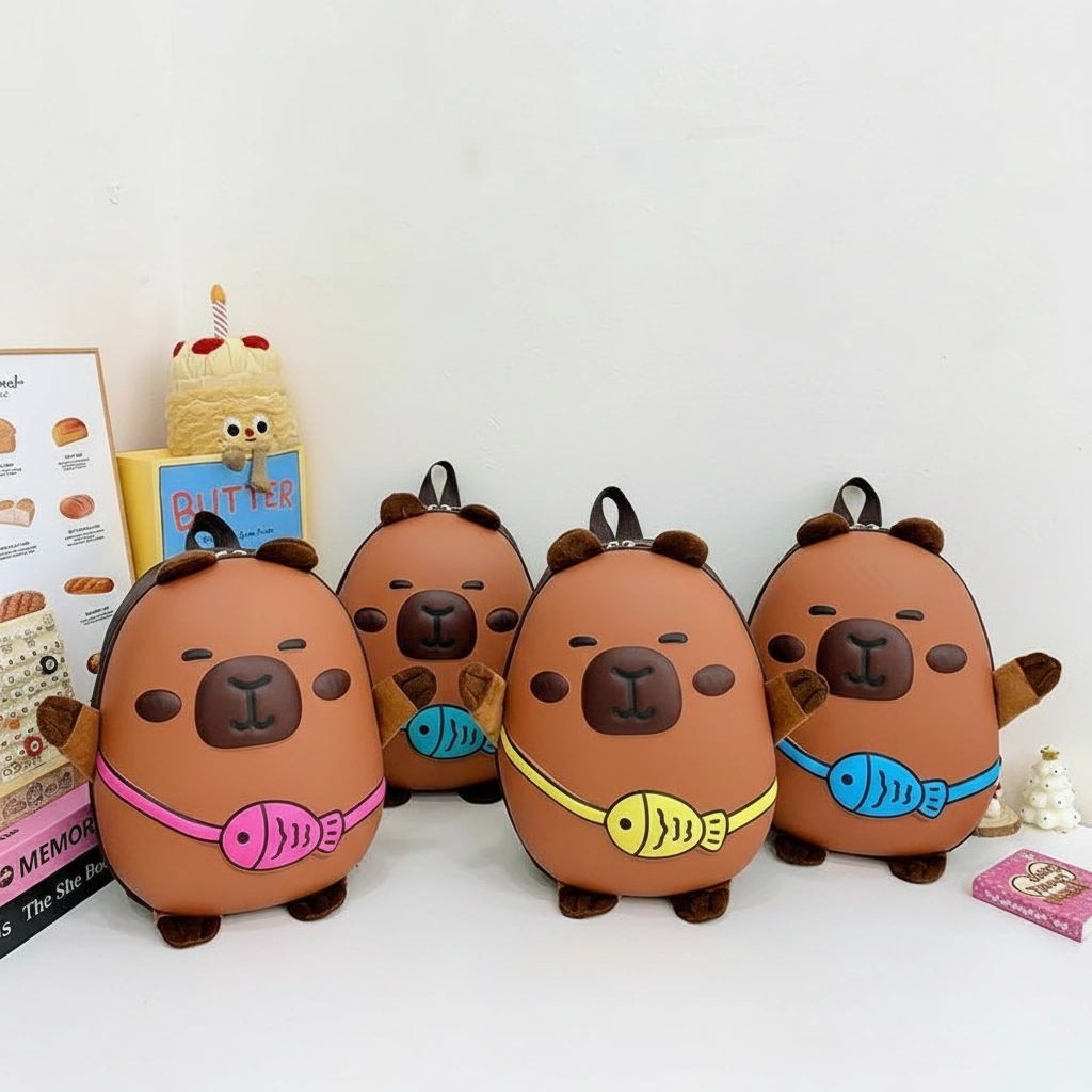 Cute Capybara Kids Backpack Hard Shell – PVC Toddler Bag with Fish (4 Colors)