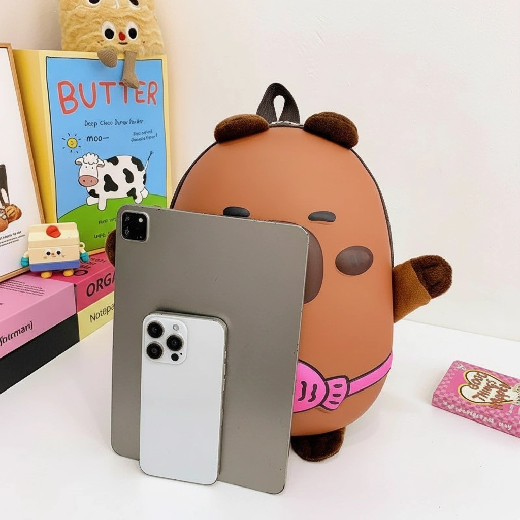 Make every trip to kindergarten or the park an adventure with this Hard Shell Capybara Backpack. Specifically designed for toddlers and young kids, this bag combines the durability of a suitcase with the cuteness of a plush toy.