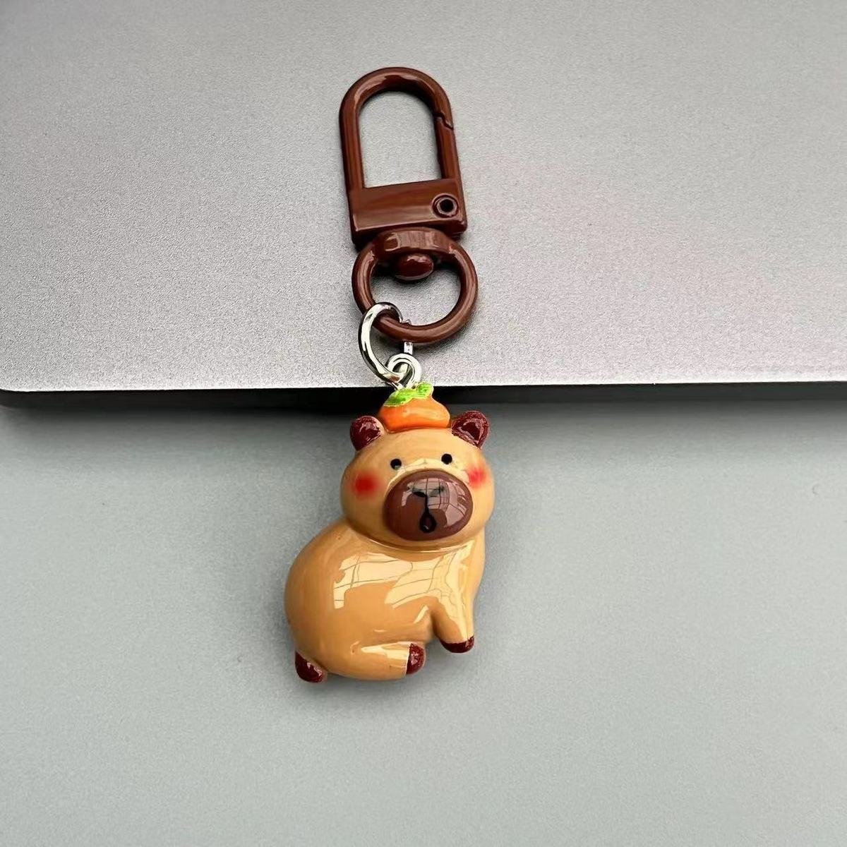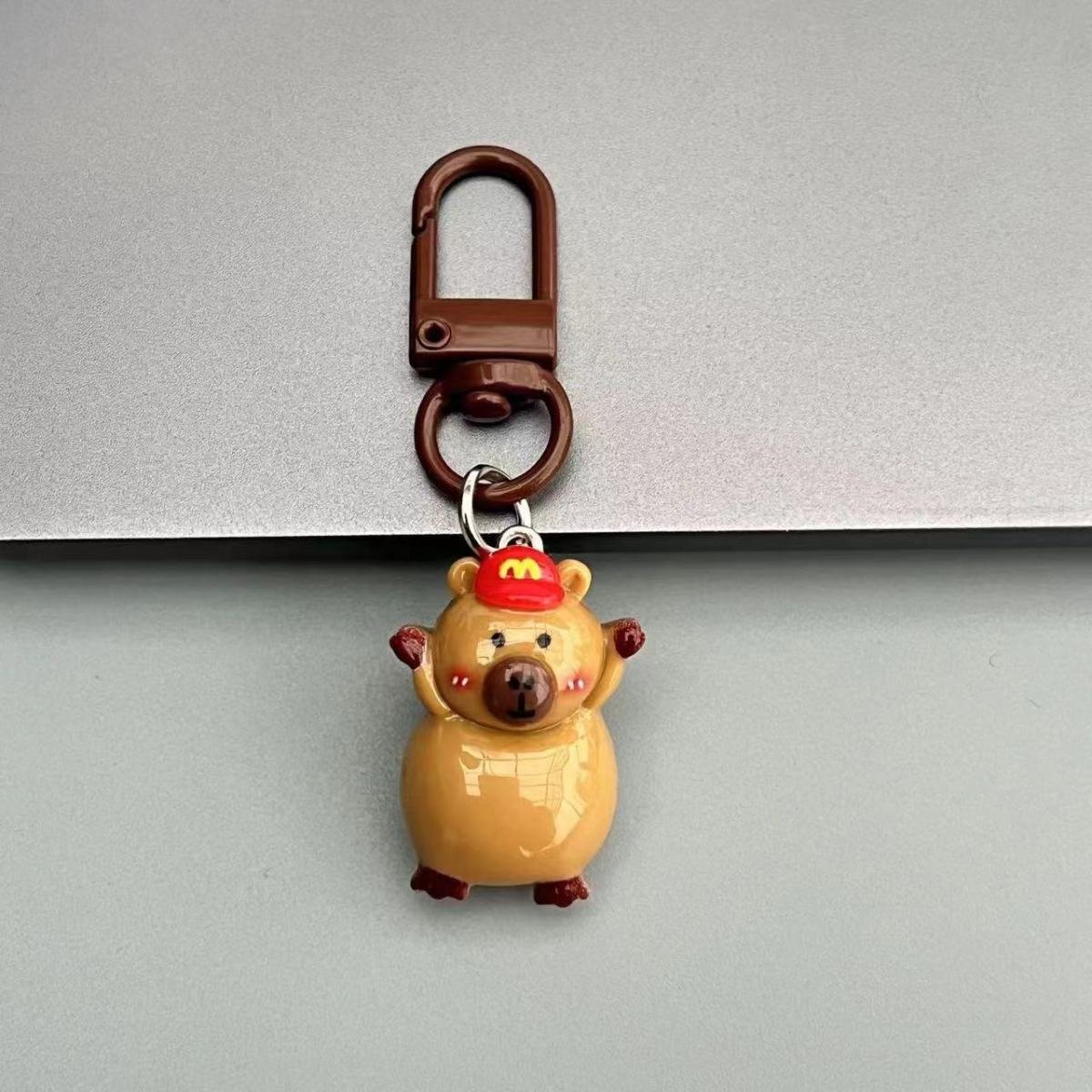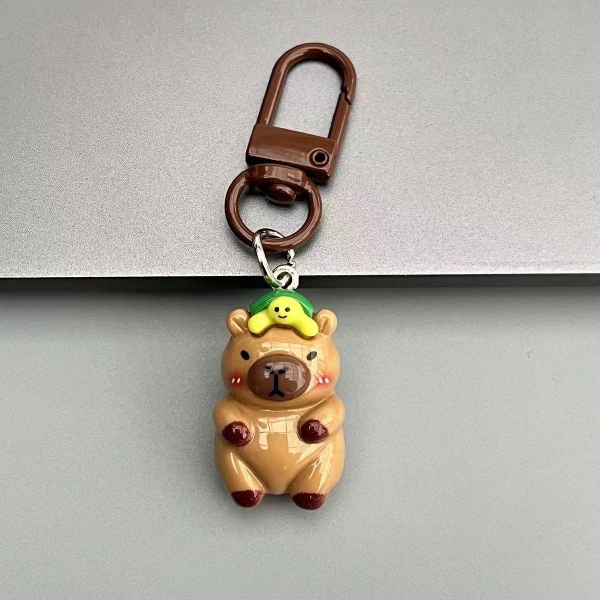 5pc Capybara Bag Charm Set – Cute Glossy Resin Keychains (Fish, Fruit & Hat Designs)