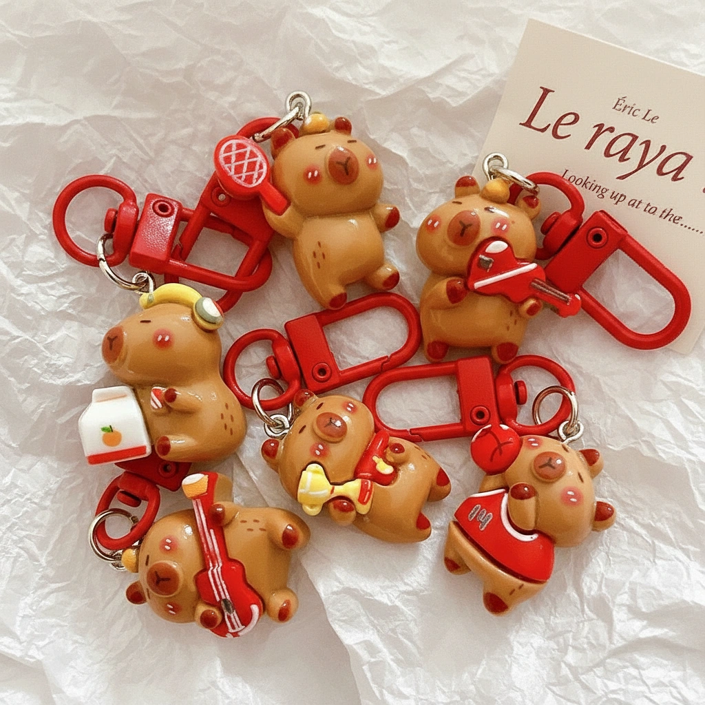 Crafted from high-quality, glossy resin, these durable charms feature vibrant red accents and sturdy hardware that pop against any backpack, tote, or key ring. They are the perfect way to show off your love for capybaras while keeping your style on point.