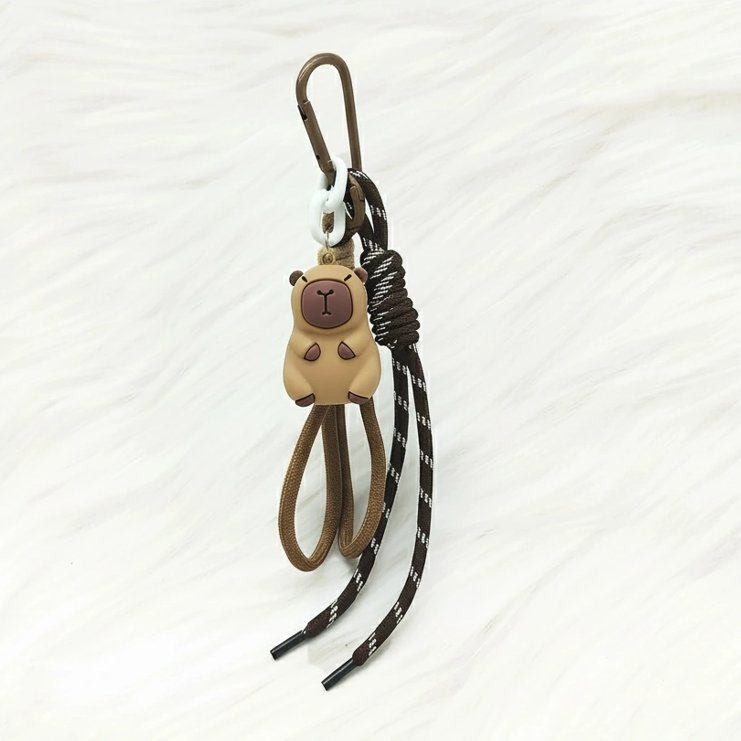 Chill Capybara Bag Charm & Keychain with Trendy Utility Rope Strap