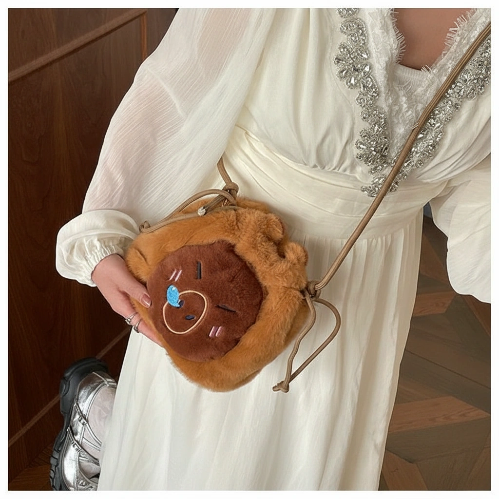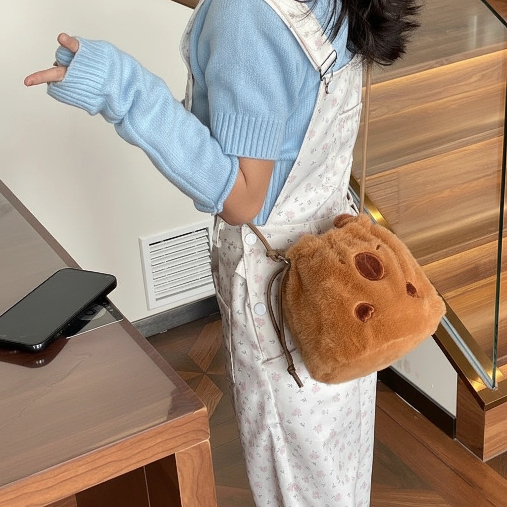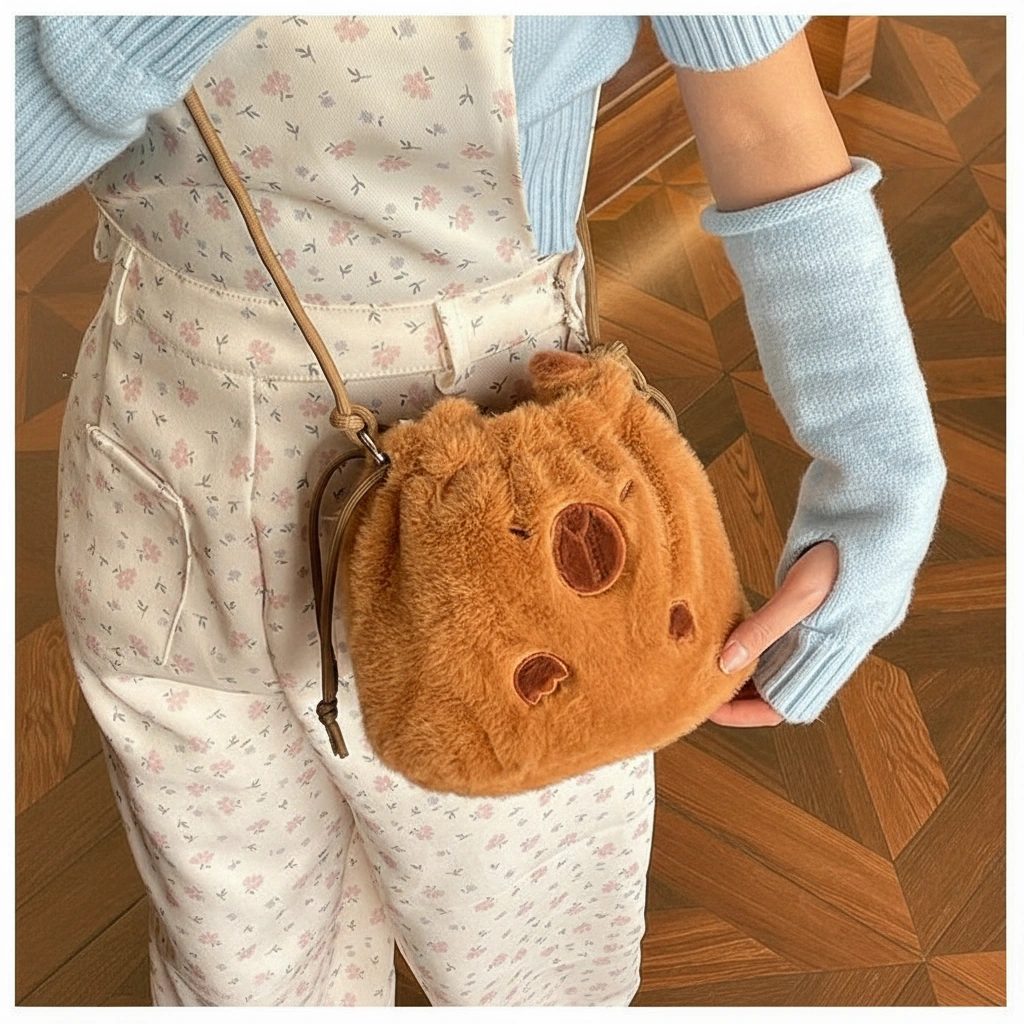 Meet Your New Emotional Support Bag Ready to embrace the “okay with everything” lifestyle? This ultra-soft capybara bag is here to hold your stuff and your sanity. Whether you are running errands or just napping in a park, this plush bucket bag brings the ultimate chill energy to your outfit. It’s not just a purse; it’s a fluffy friend that goes wherever you go.