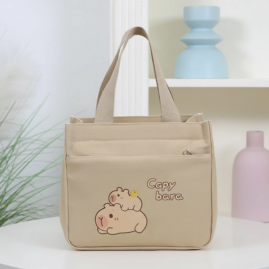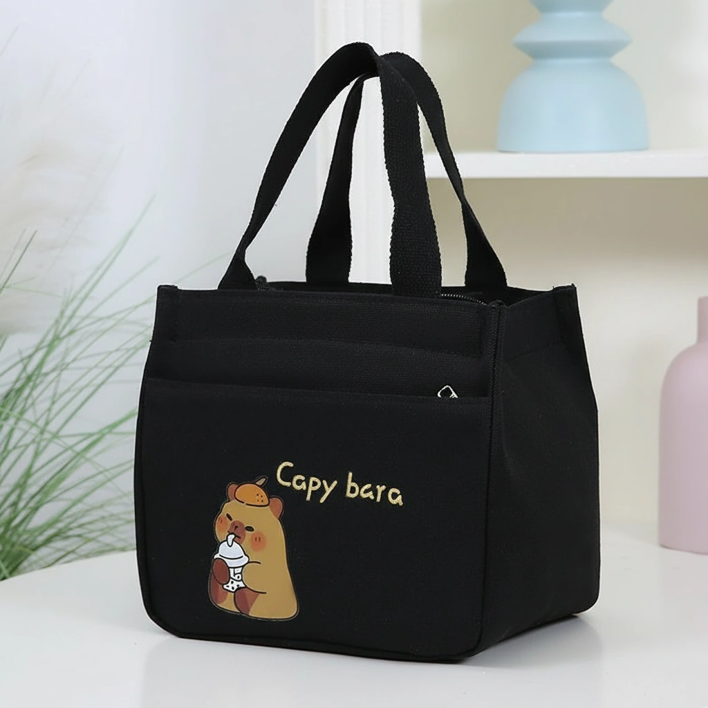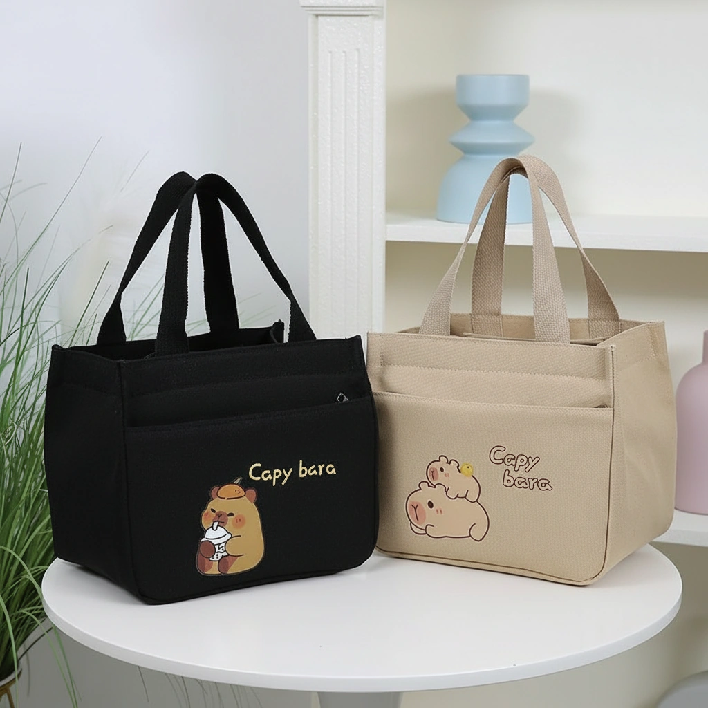 The Chillest Way to Carry Your Snacks Make every meal a little happier with this sturdy and adorable Capybara Canvas Lunch Bag. Whether you are packing a bento for work, snacks for a picnic, or just need a cute daily tote, this bag delivers practicality with a side of dopamine. Designed with a boxy shape to keep your food containers flat and secure, it’s the ultimate dining companion for capybara lovers.