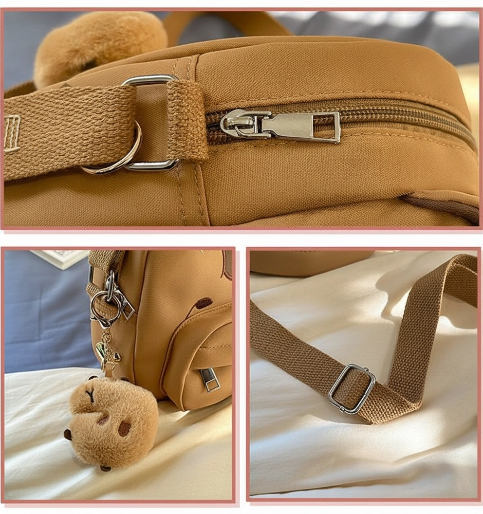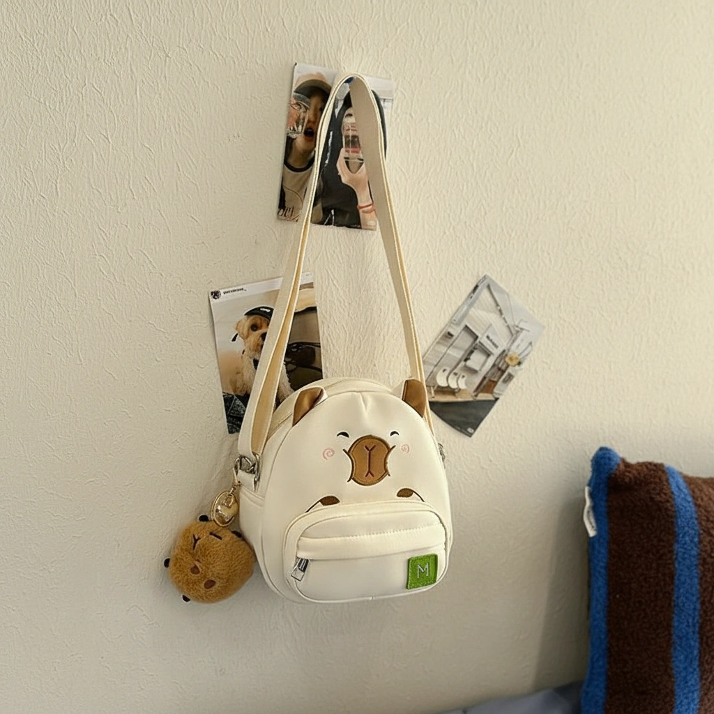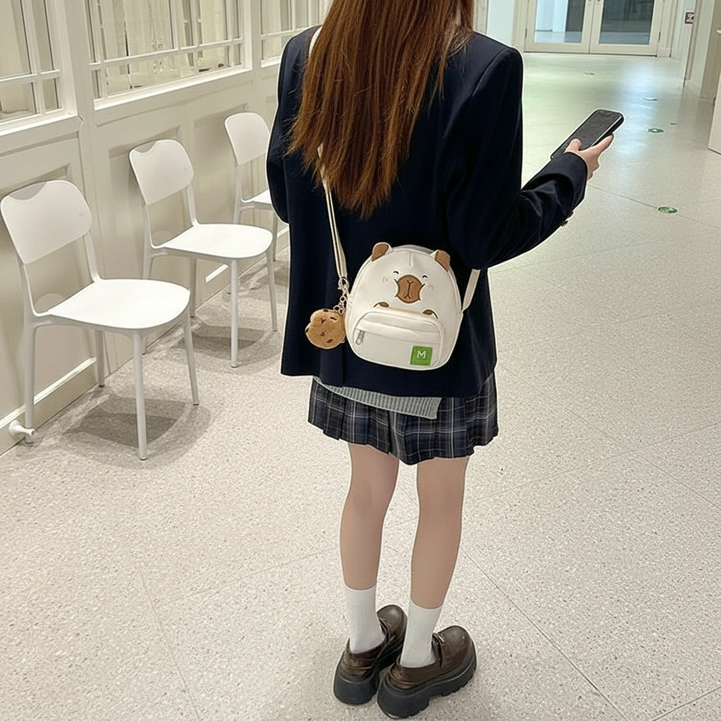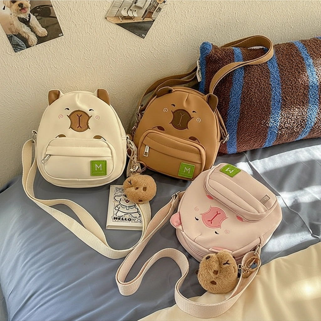 - Includes Plush Charm: Each bag comes with a matching fluffy capybara head keychain attached, adding a soft texture contrast to the smooth bag body.