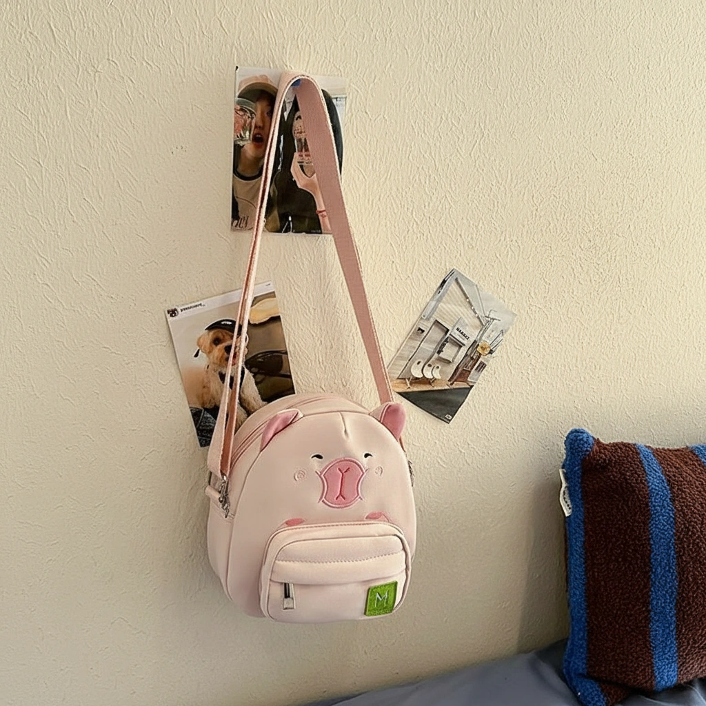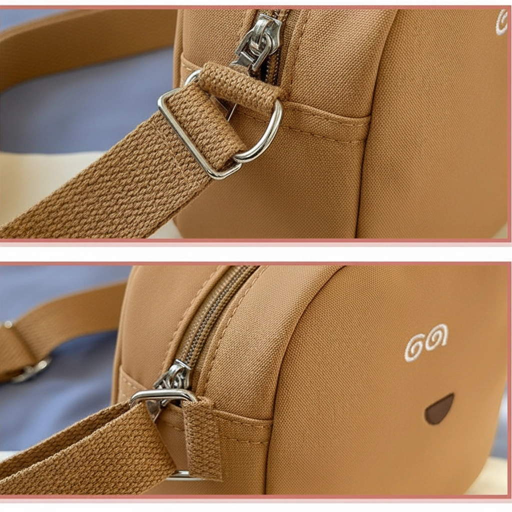 - Structured 3D Design: Shaped like a mini backpack but worn as a crossbody, featuring adorable 3D ears and a premium embroidered face with a patch nose.