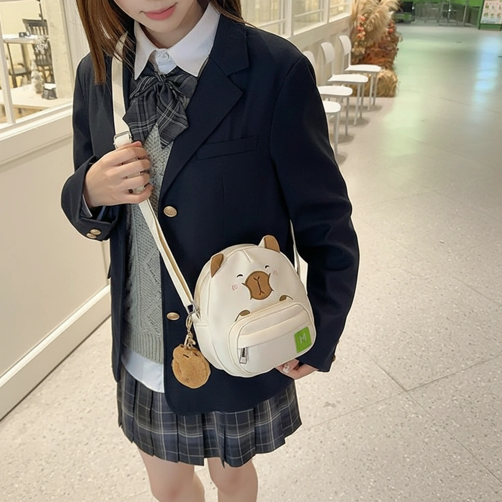 Chic, Petite, and Perfectly Sweet Who said cute can’t be sophisticated? This Capybara Mini Crossbody Bag blends adorable character design with a sleek, modern silhouette. Crafted from smooth, high-quality PU leather, it offers a more structured look than our plush bags while keeping the “chill” vibes alive. It’s the perfect accessory for dates, shopping trips, or any time you want to travel light and look kawaii.