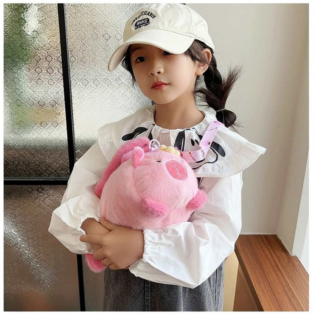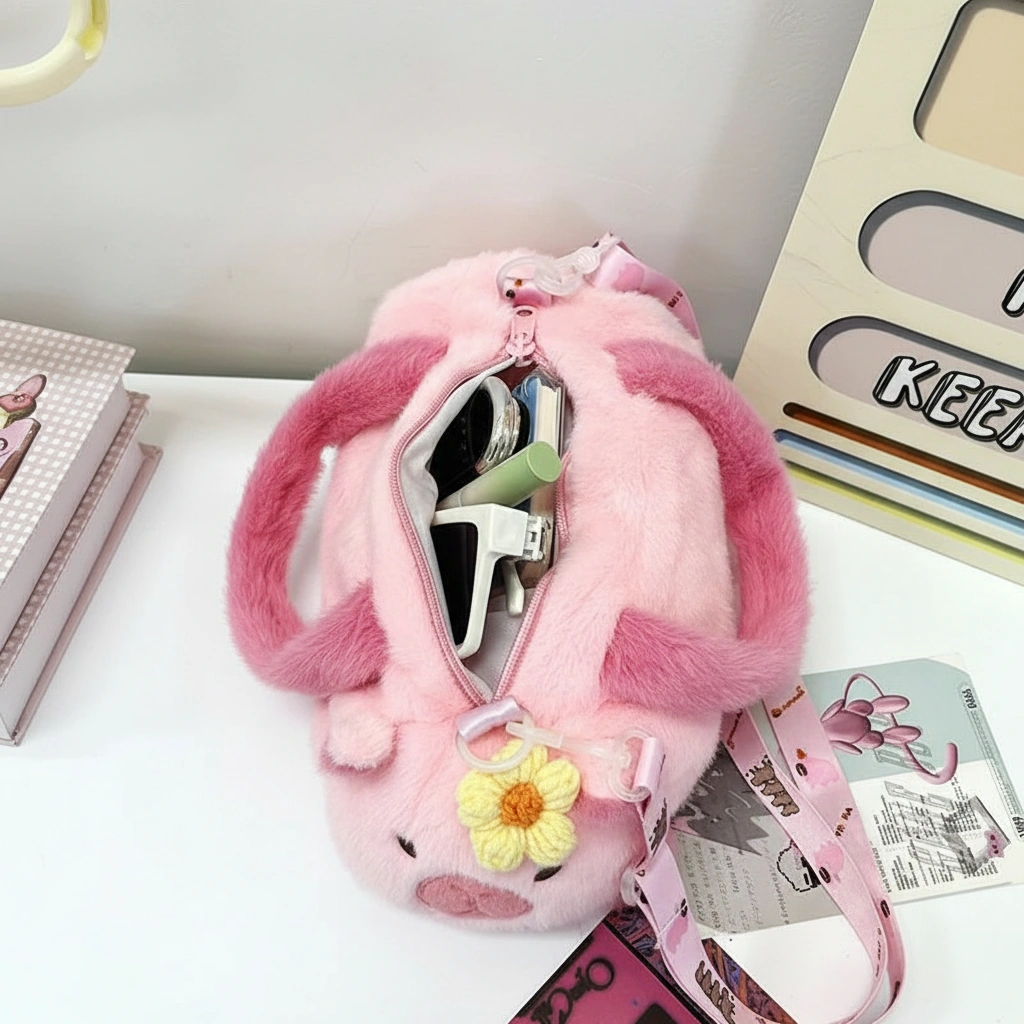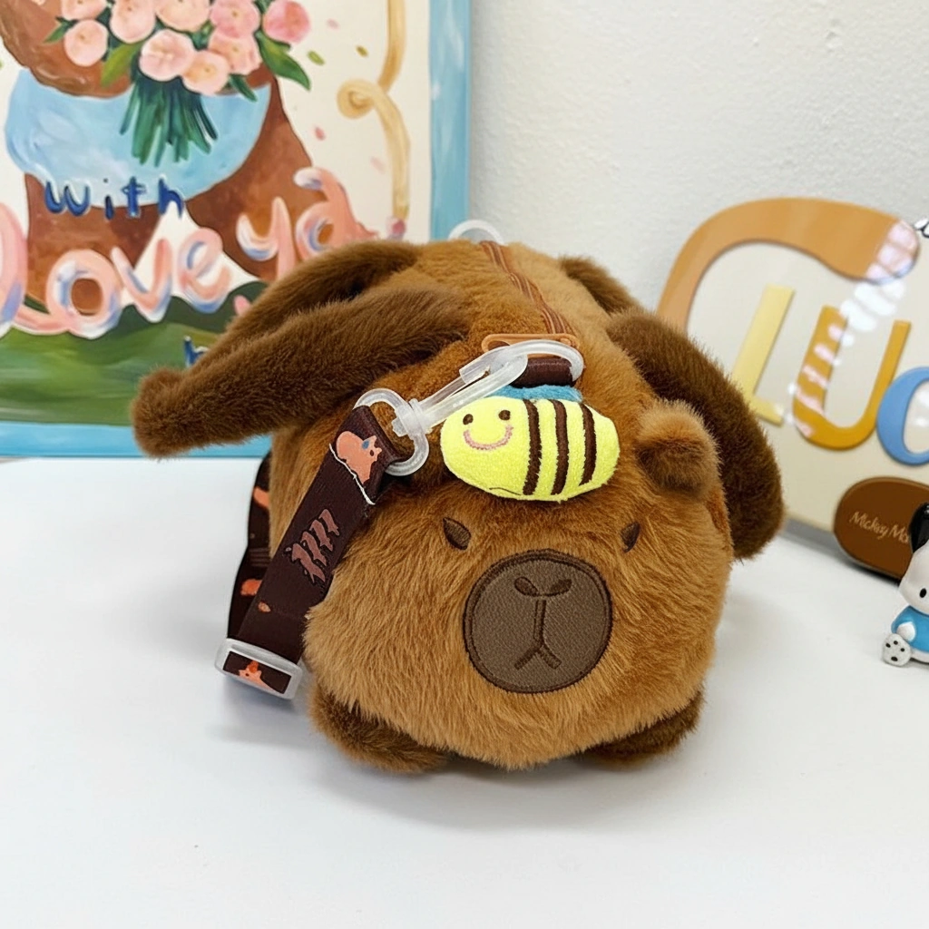 - Dual Carry Options: Carry it by the soft, plush-wrapped top handles for a cute handbag look, or attach the patterned shoulder strap (printed with mini cartoon capybaras) to wear it comfortably as a crossbody.