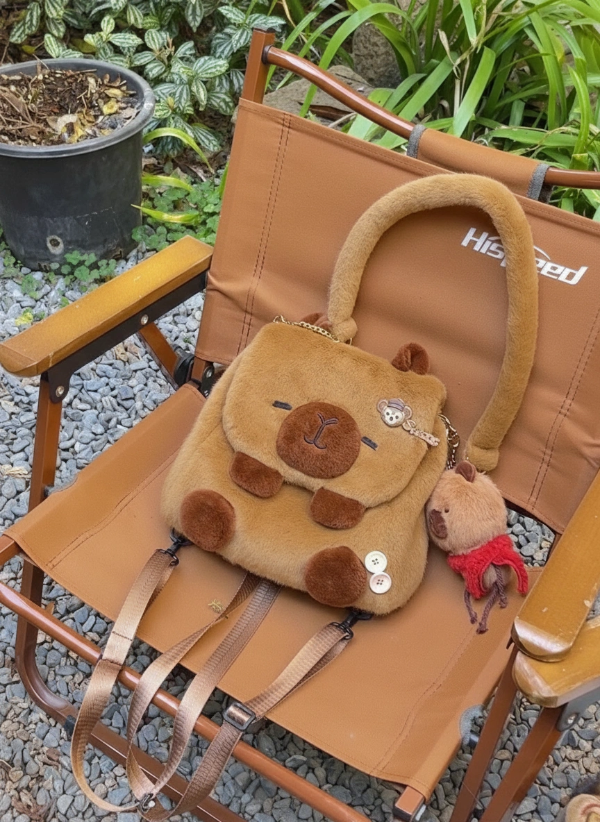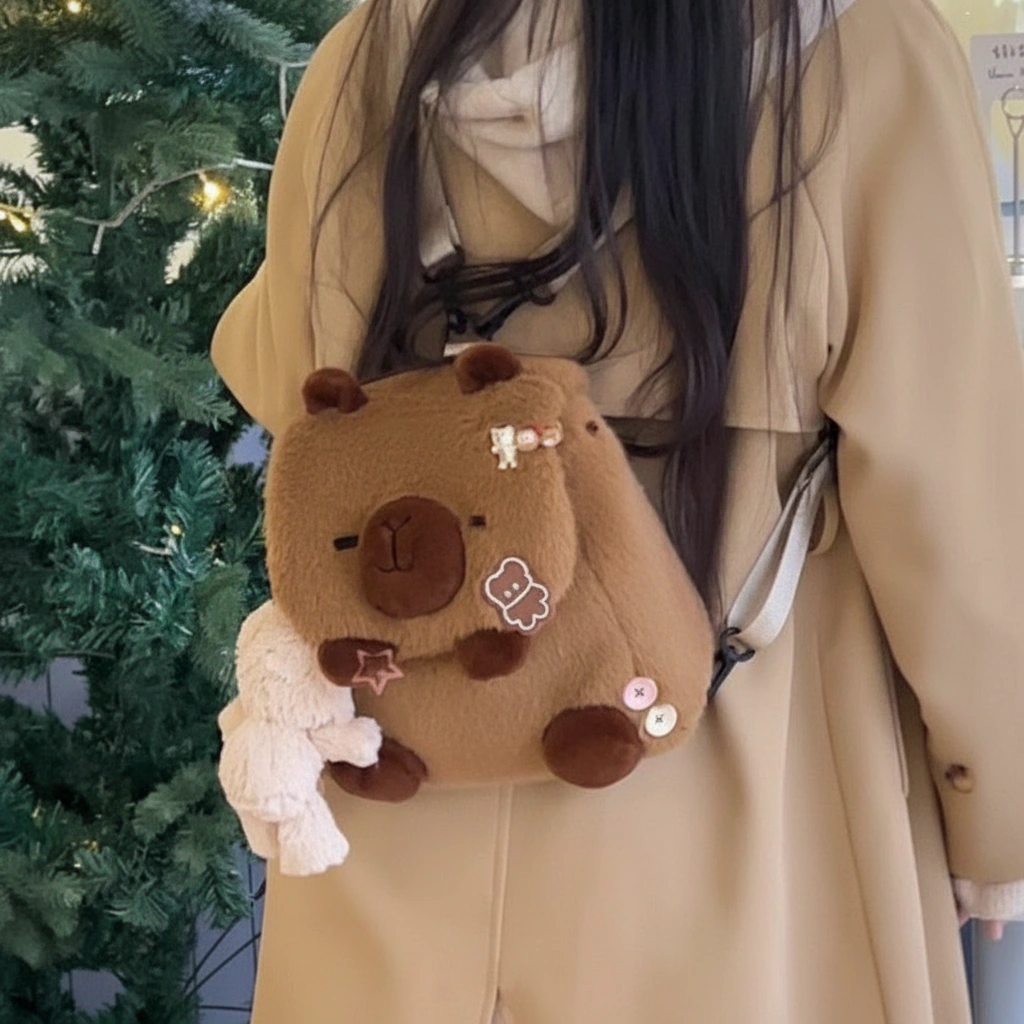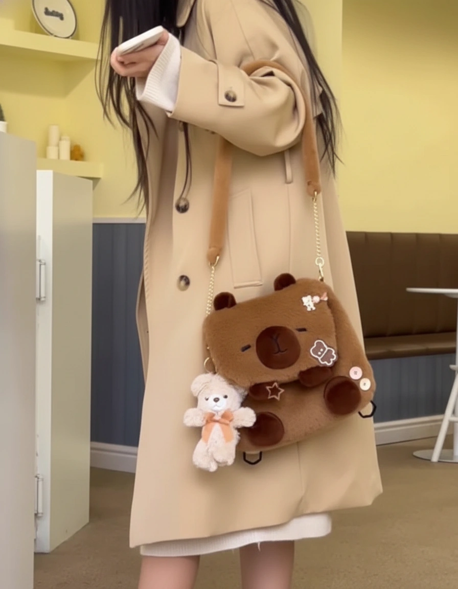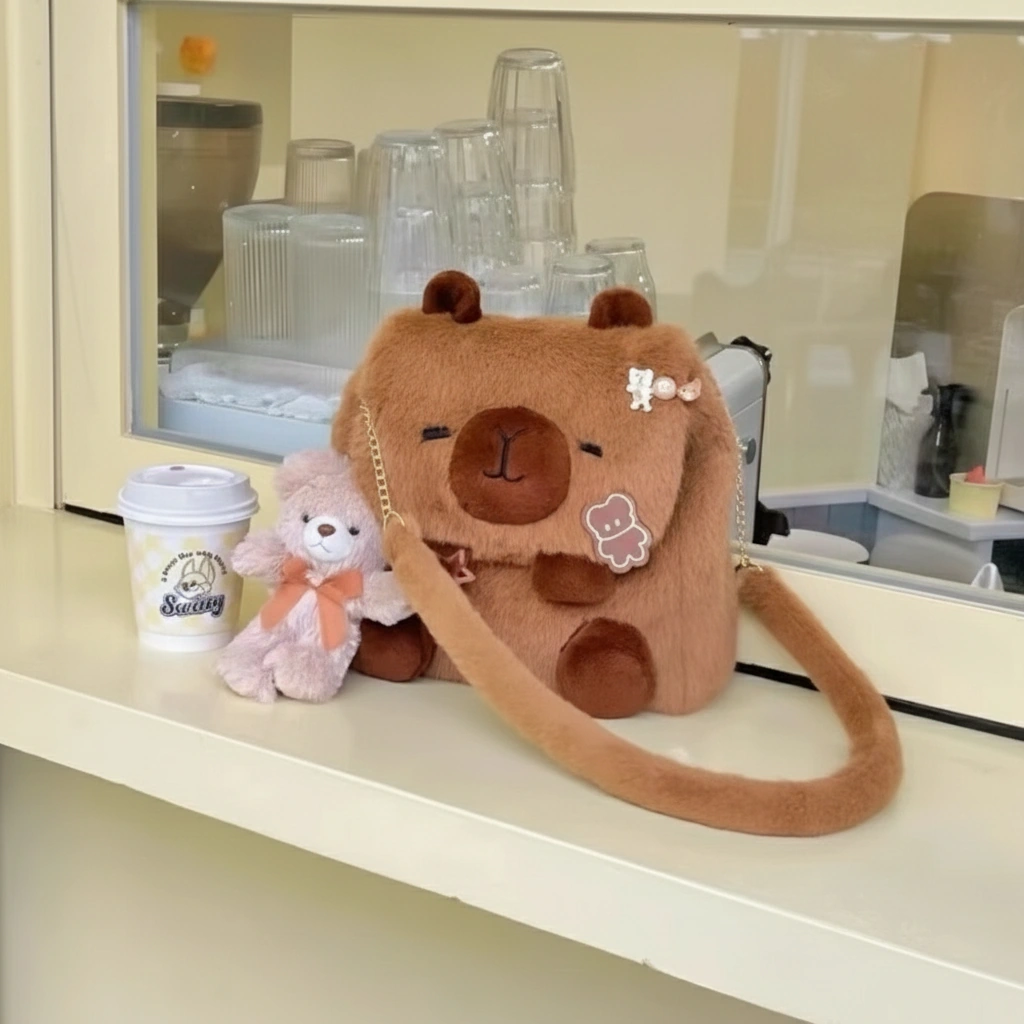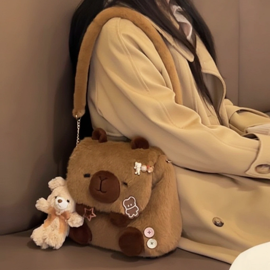 Your Blank Canvas for Cuteness Meet your new favorite creative companion! This Capybara Shoulder Bag is designed to be adorable on its own, but it shines even brighter when you make it yours. With its clean, fluffy surface and large flap, it serves as the perfect base for your favorite enamel pins, iron-on patches, or plush keychains. Whether you keep it minimalist or go maximum “kawaii” with decorations, this bag adapts to your unique vibe.