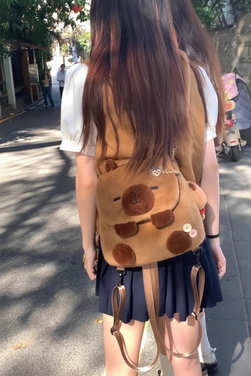 Capybara Shoulder Bag Plush DIY Backpack – Soft Schoolbag (Decorations Not Included)