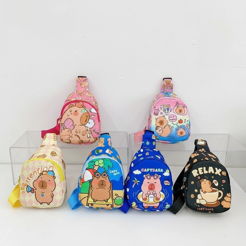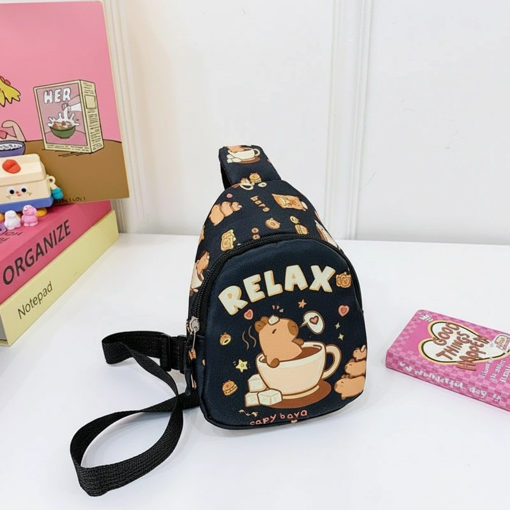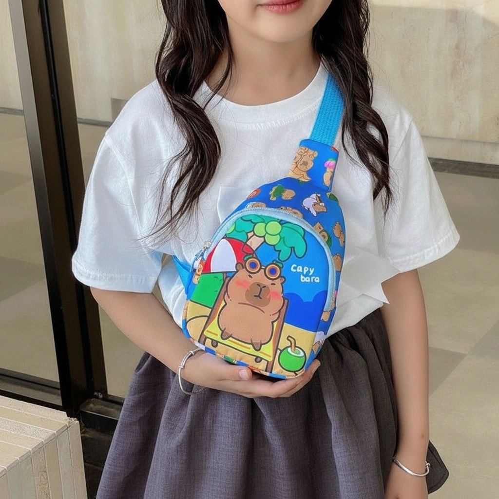 Fun Vibes Only for Little Explorers Add a pop of color to your child’s outfit with this vibrant Kids Capybara Chest Pack. Designed for the coolest kids on the block, this series features our favorite chill animal enjoying life’s best moments—from sunny beach days to cozy bubble baths. It is the perfect lightweight companion for storing snacks, small toys, and travel treasures while keeping hands free for playing.
