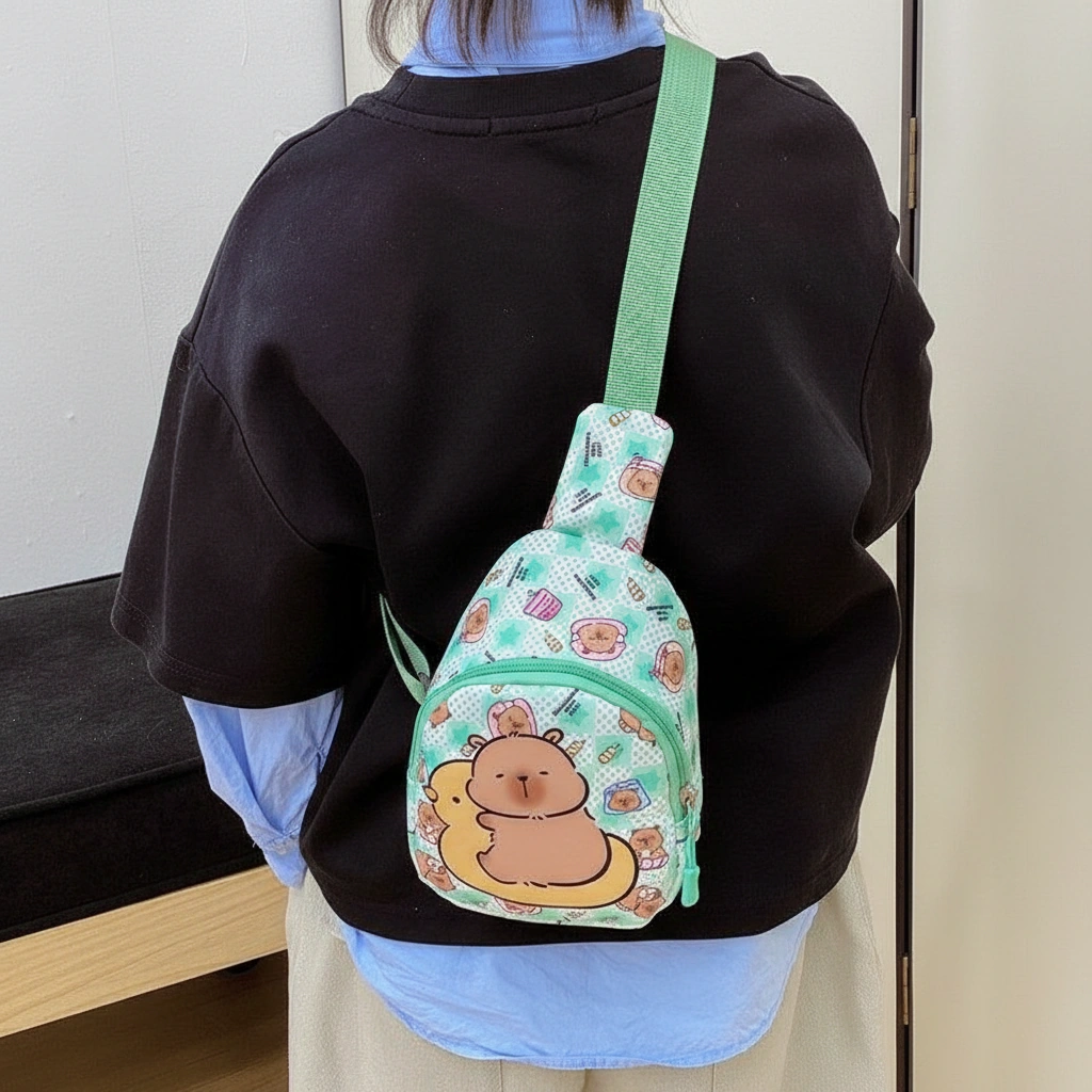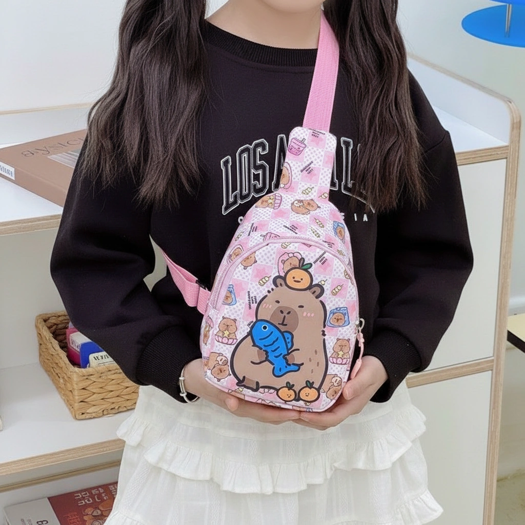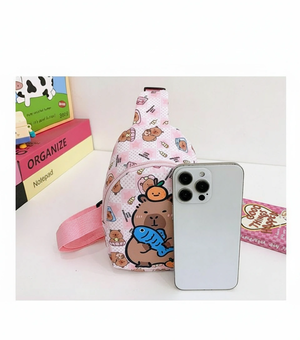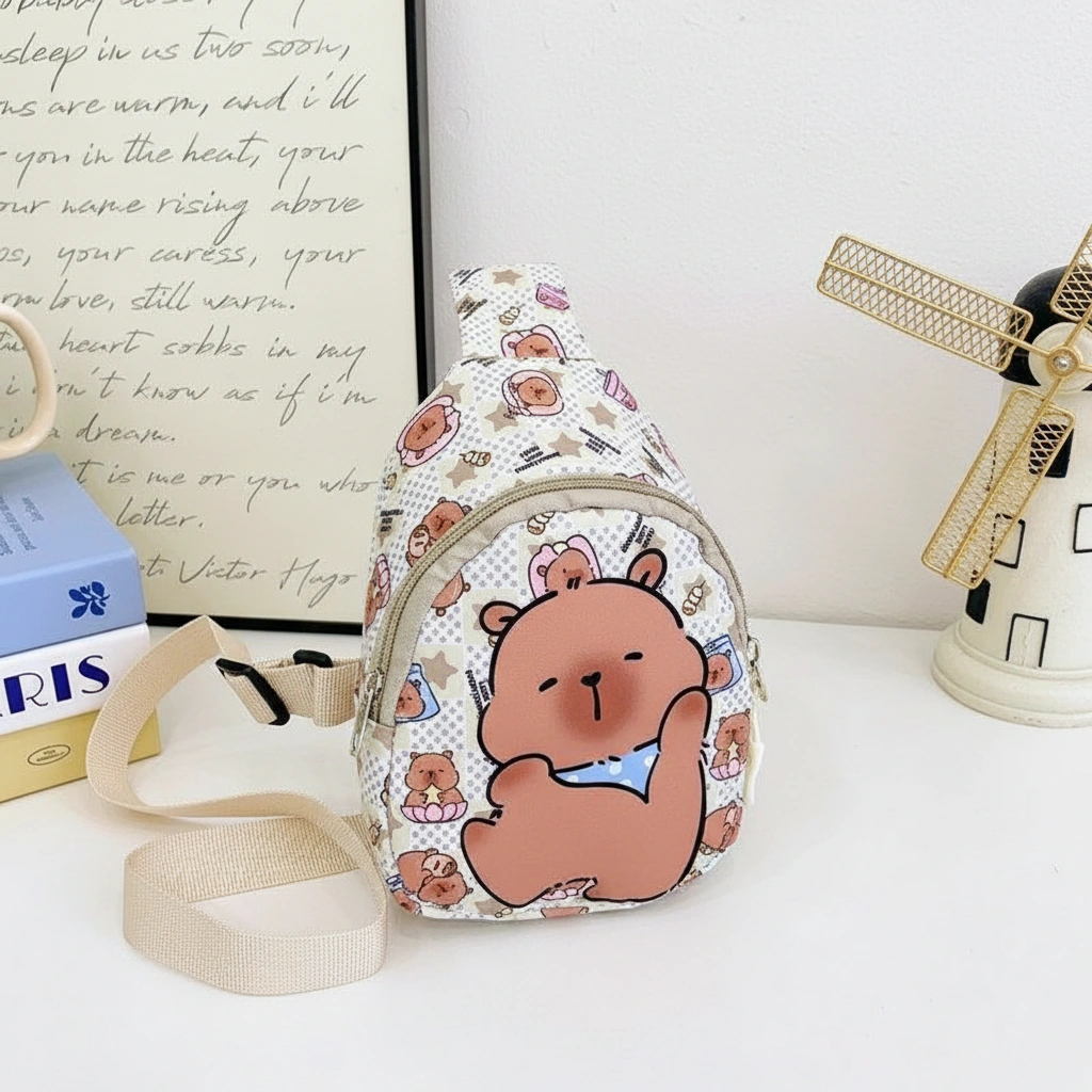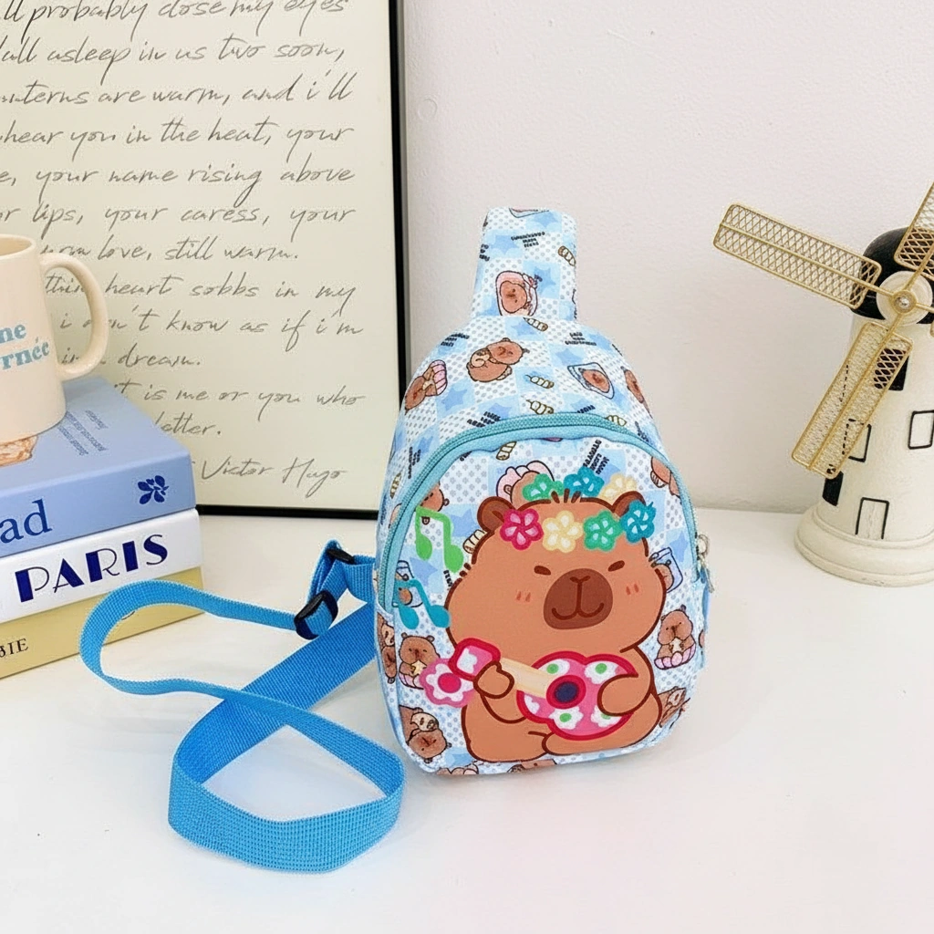 Kids Capybara Mini Sling Bag Cartoon Chest Pack – 6 Cute Styles (Bike, Guitar & Angel)