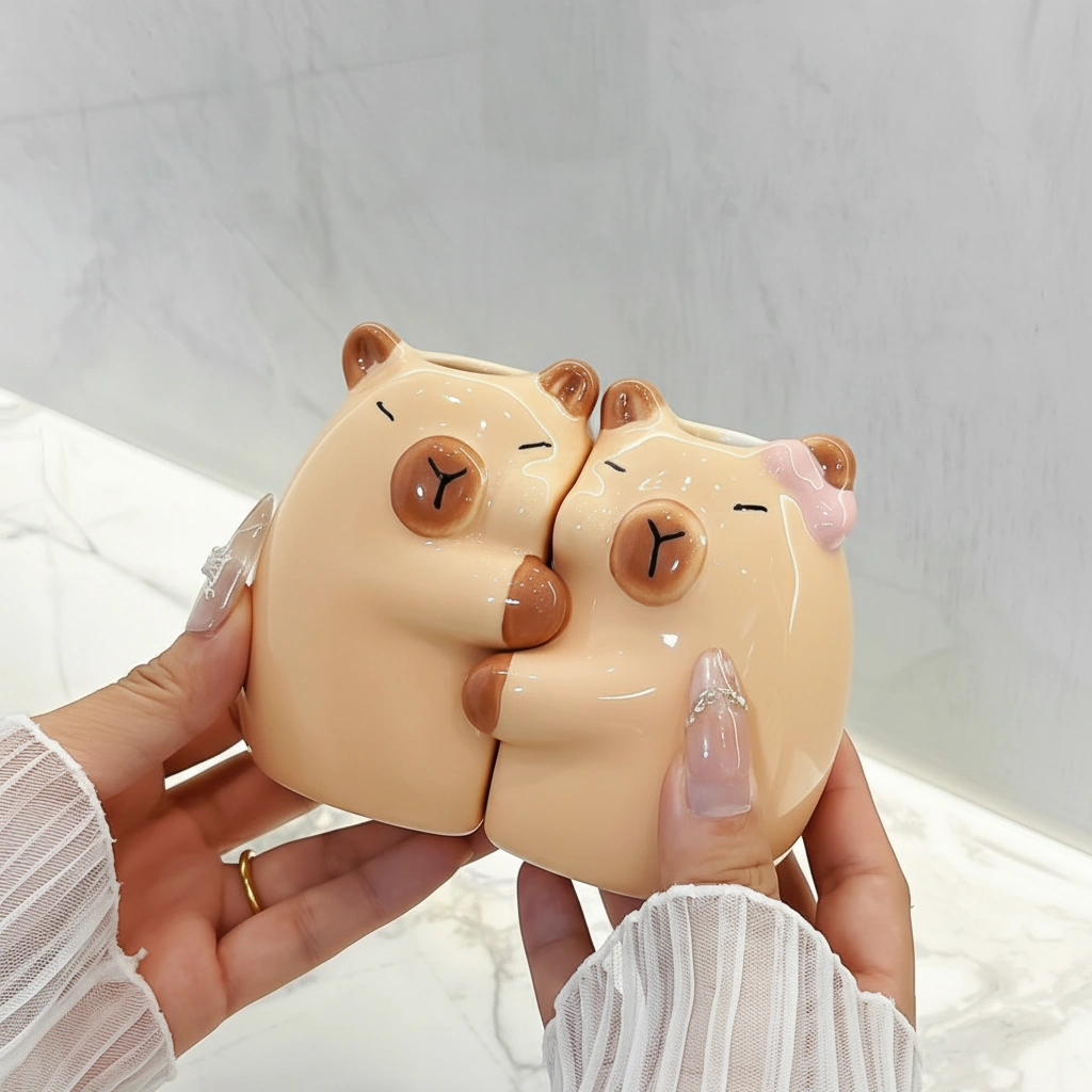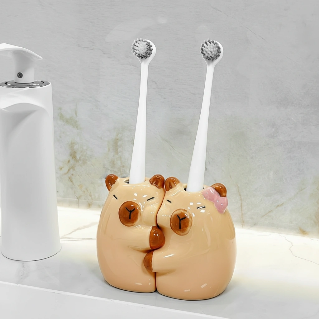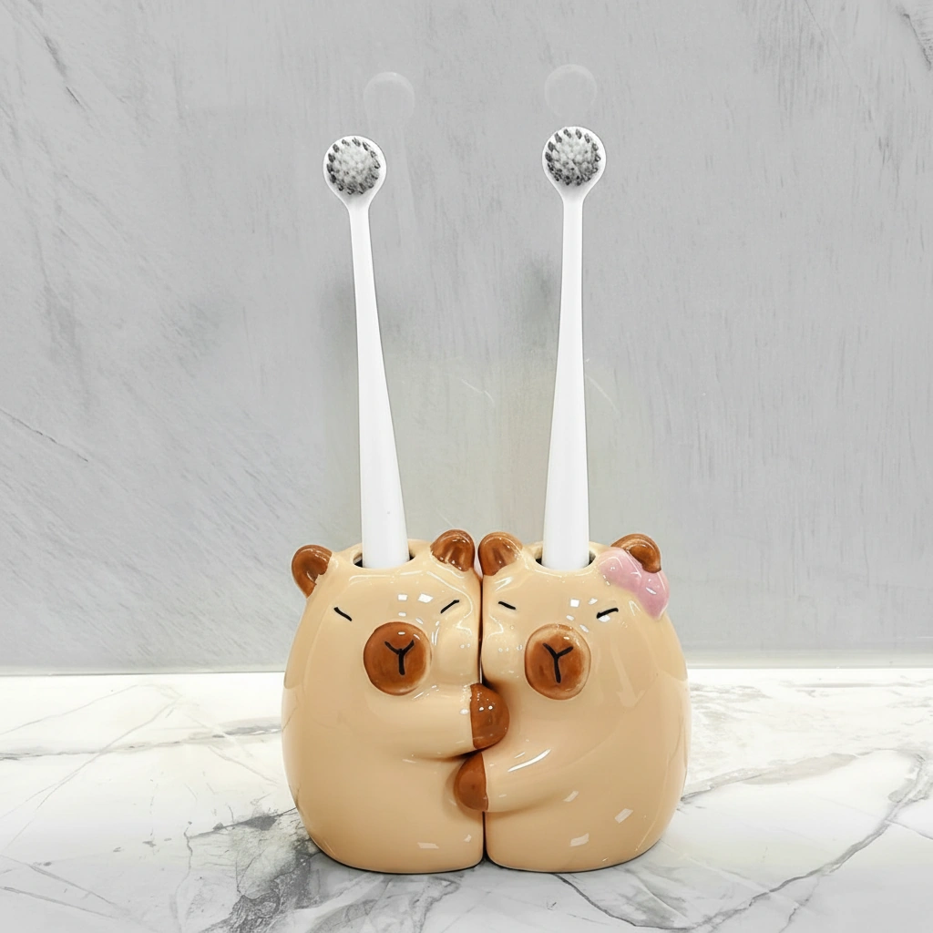 Whether you keep them hugging or give them some space, these ceramic capybaras bring a peaceful, friendly vibe to your daily hygiene routine.