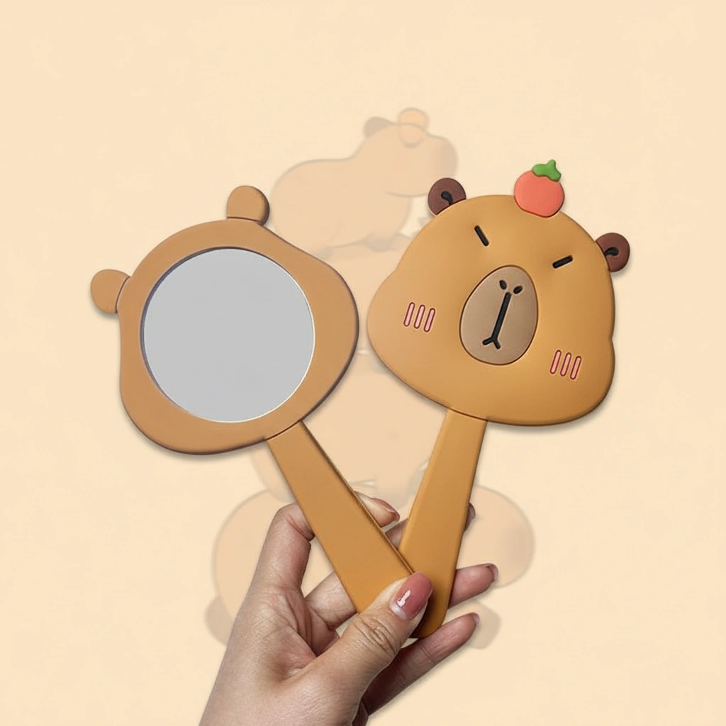 Get ready close-up with the Capybara Handheld Makeup Mirror, the perfect accessory for anyone who takes their grooming (and their cuteness) seriously. Unlike fragile plastic mirrors, this one is framed in a soft, matte silicone material that feels great to hold and protects the glass from accidental bumps.