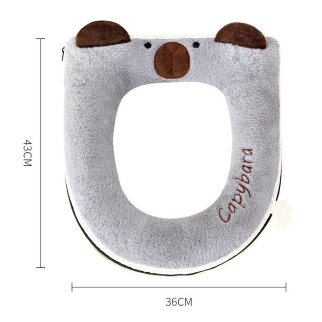 Capybara Plush Toilet Seat Cover – Warm Zipper Cushion Pad with Handle (Grey, Brown, White)