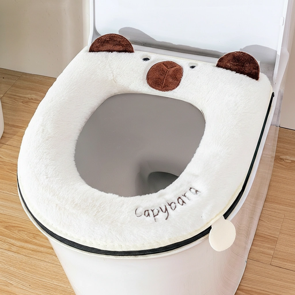 Designed with thick, fluffy faux fur, this cover features an embroidered capybara face with cute 3D ears at the back, instantly adding warmth and personality to your restroom.