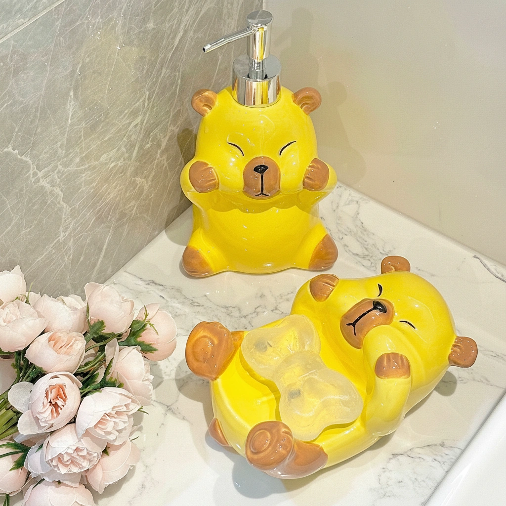 This isn’t just a bathroom accessory; it’s a mood booster. Every time you reach for the soap, you’ll be greeted by a happy, blushing capybara enjoying its own little spa day.