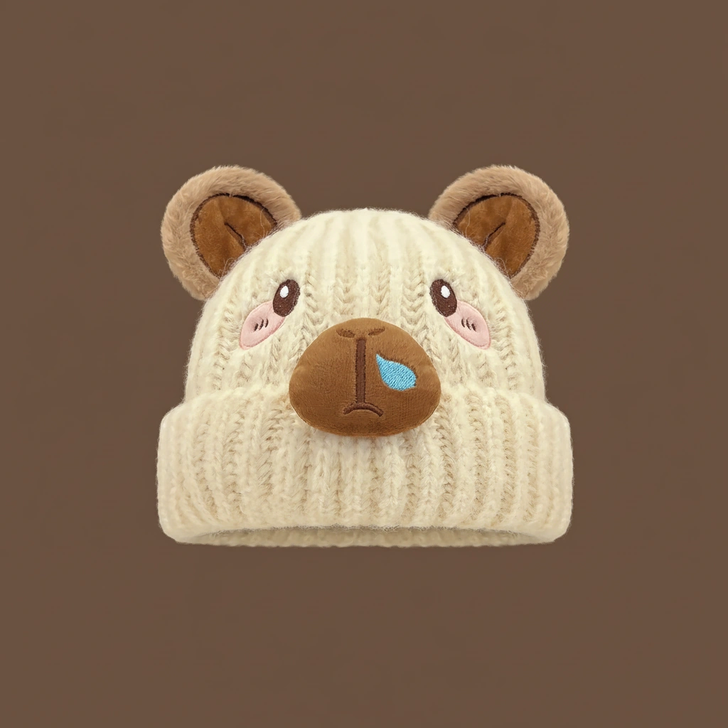 Emotional Capybara Beanie – Soft Knit Winter Hat with Sparkly Anime Eyes & Jersey Lining (3 Colors)