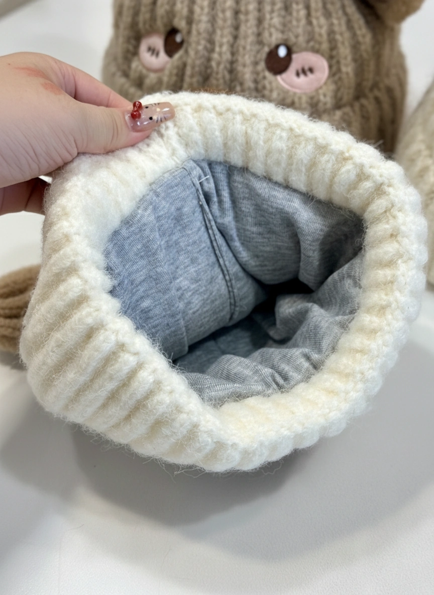 - Material: Fuzzy Acrylic Blend (Outer) + Soft Jersey Cotton Blend (Lining)
