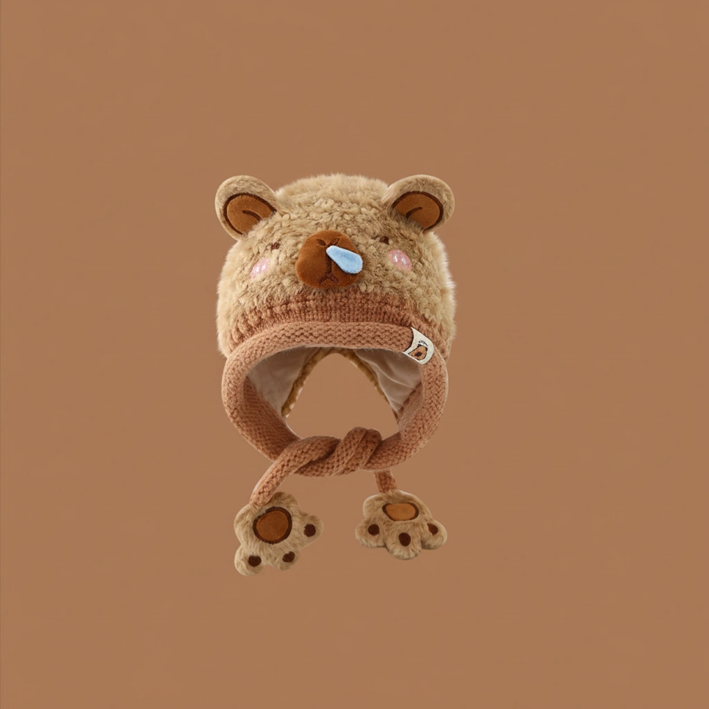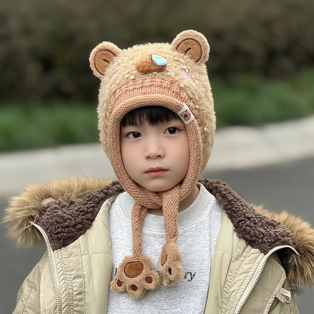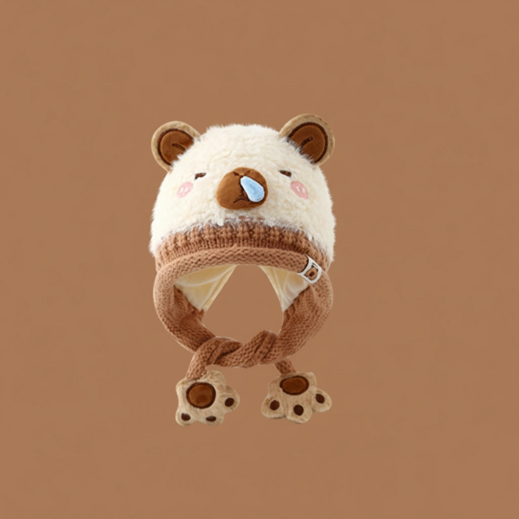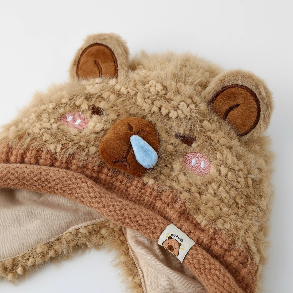 Distinguished by its textured “teddy bear” fur and a comical blue “snot bubble” on the nose, this bonnet is designed for kids who love to stand out. It’s not just warm; it’s a conversation starter that brings smiles wherever you go.