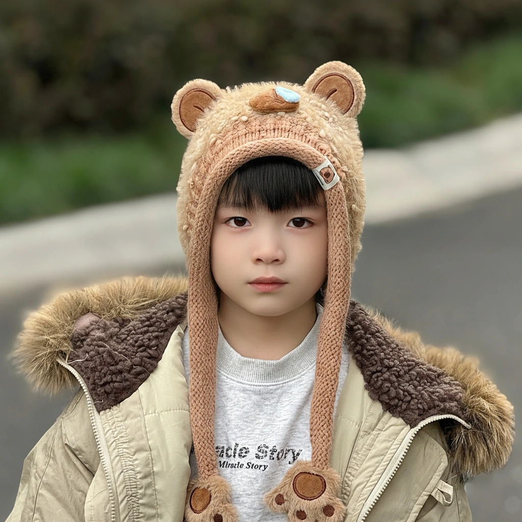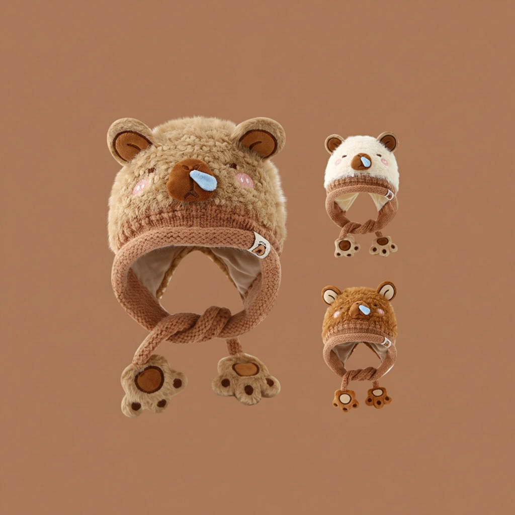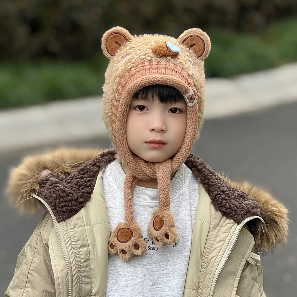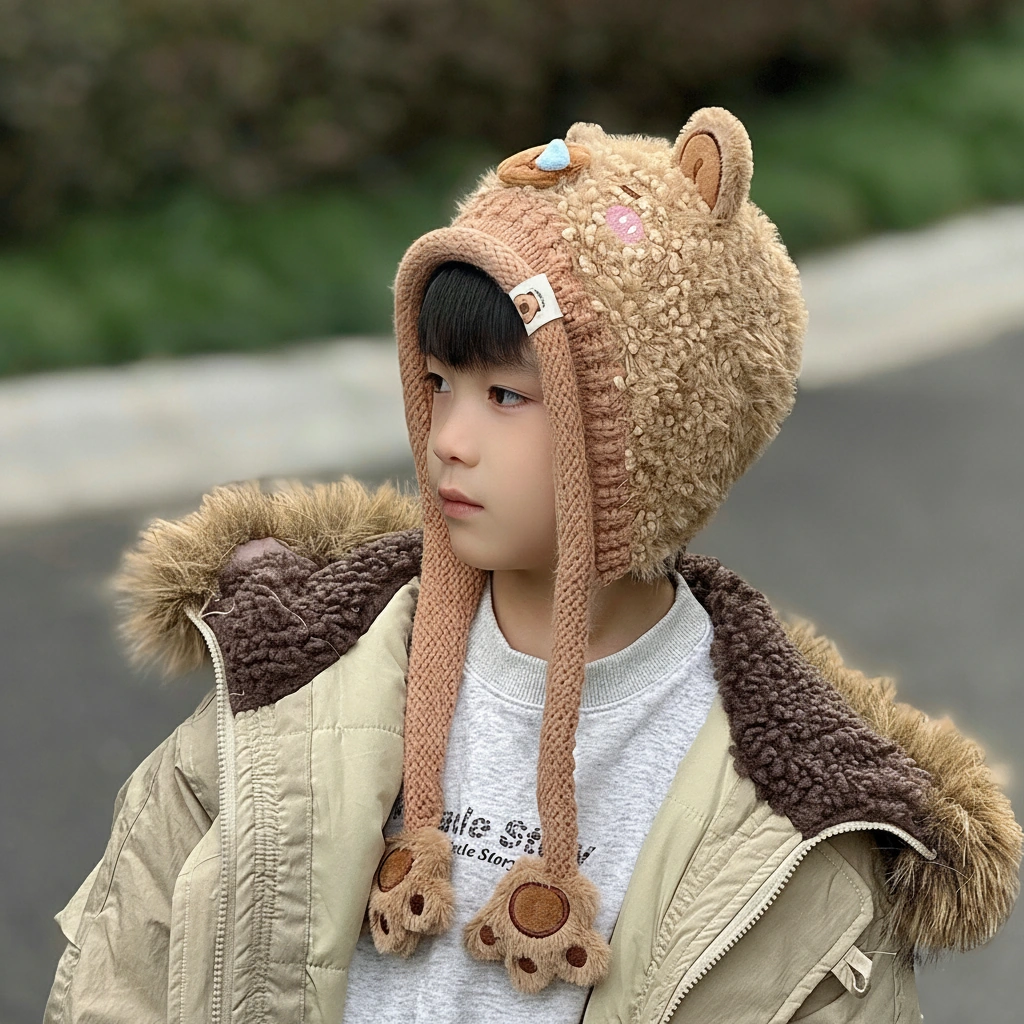 Distinguished by its textured “teddy bear” fur and a comical blue “snot bubble” on the nose, this bonnet is designed for kids who love to stand out. It’s not just warm; it’s a conversation starter that brings smiles wherever you go.