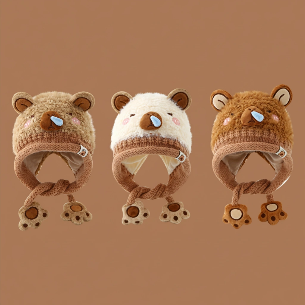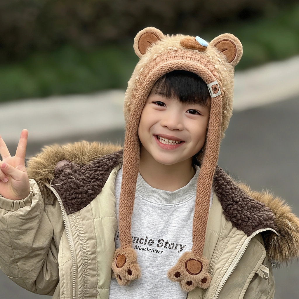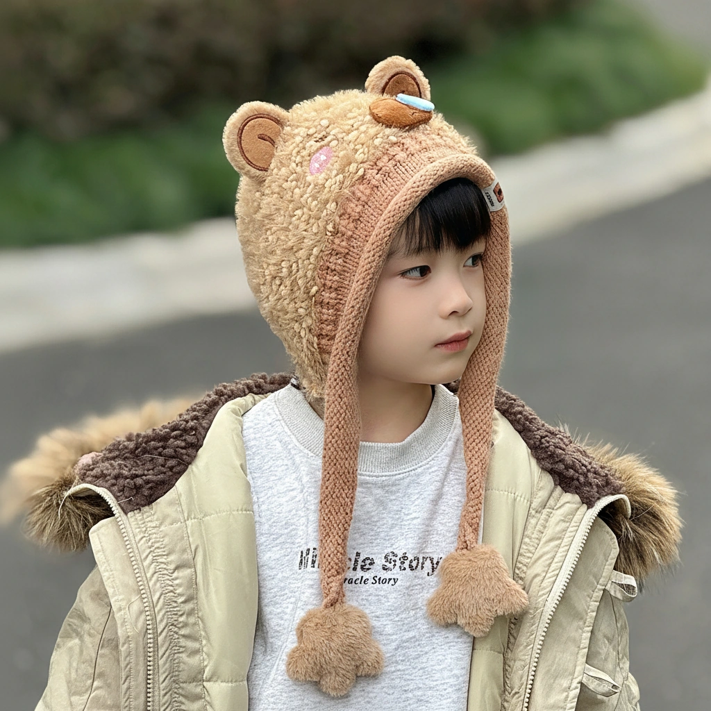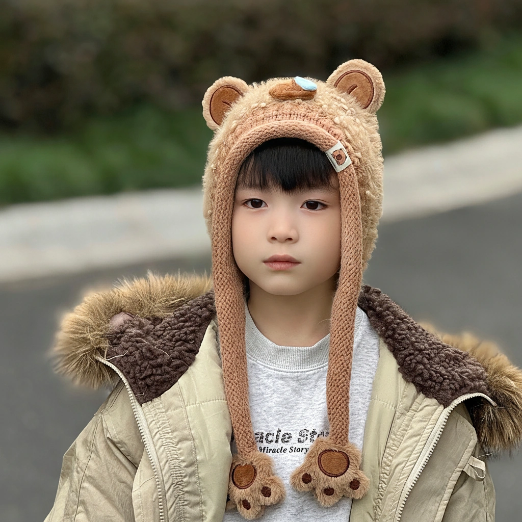 Distinguished by its textured “teddy bear” fur and a comical blue “snot bubble” on the nose, this bonnet is designed for kids who love to stand out. It’s not just warm; it’s a conversation starter that brings smiles wherever you go.