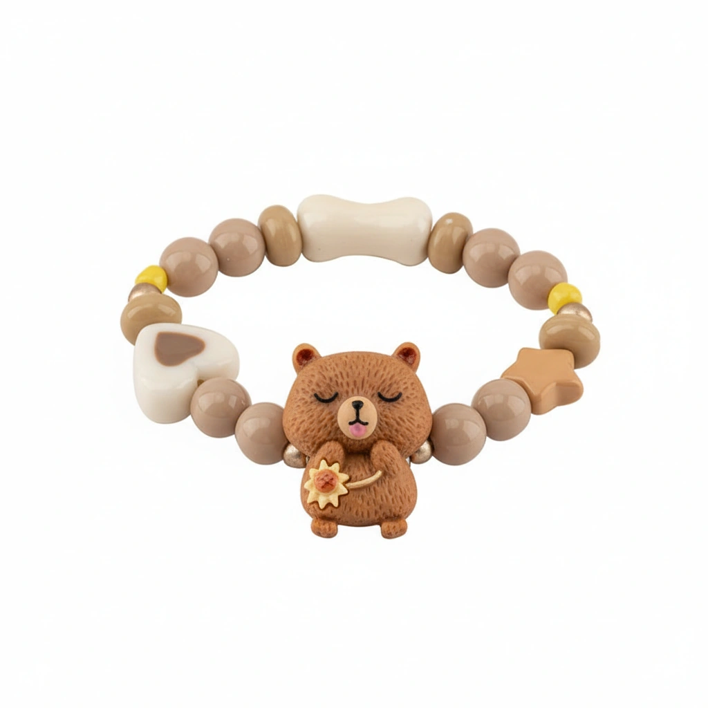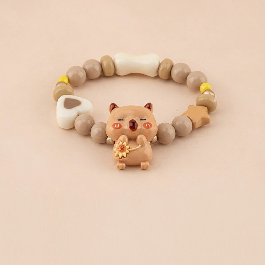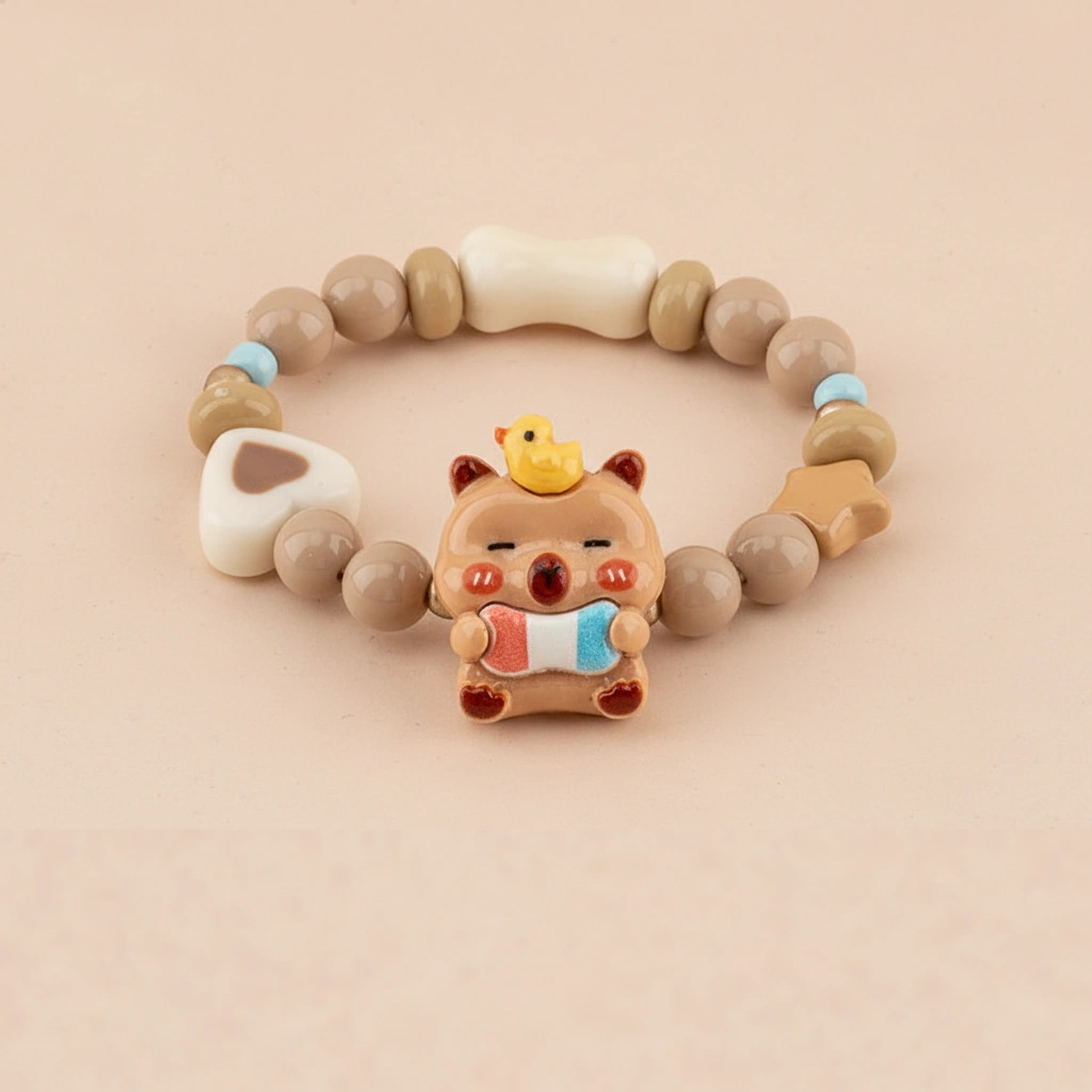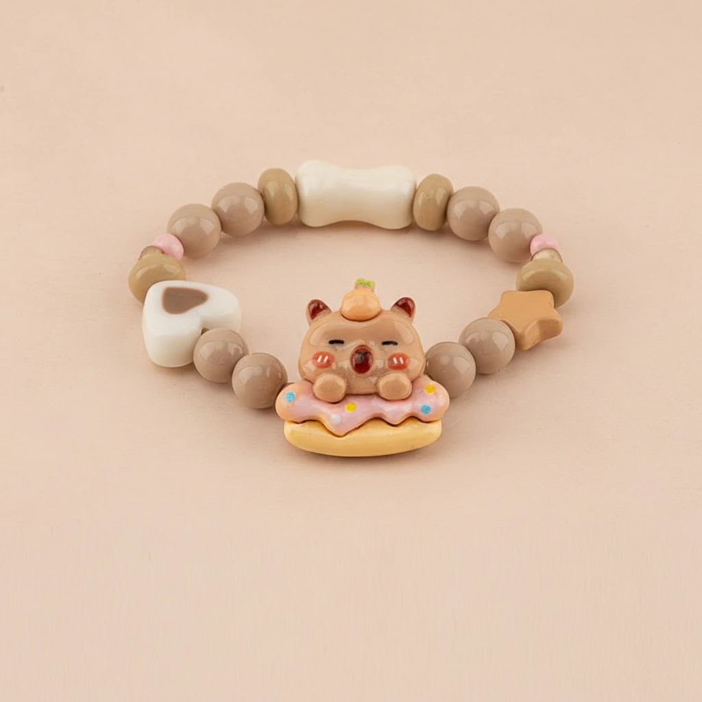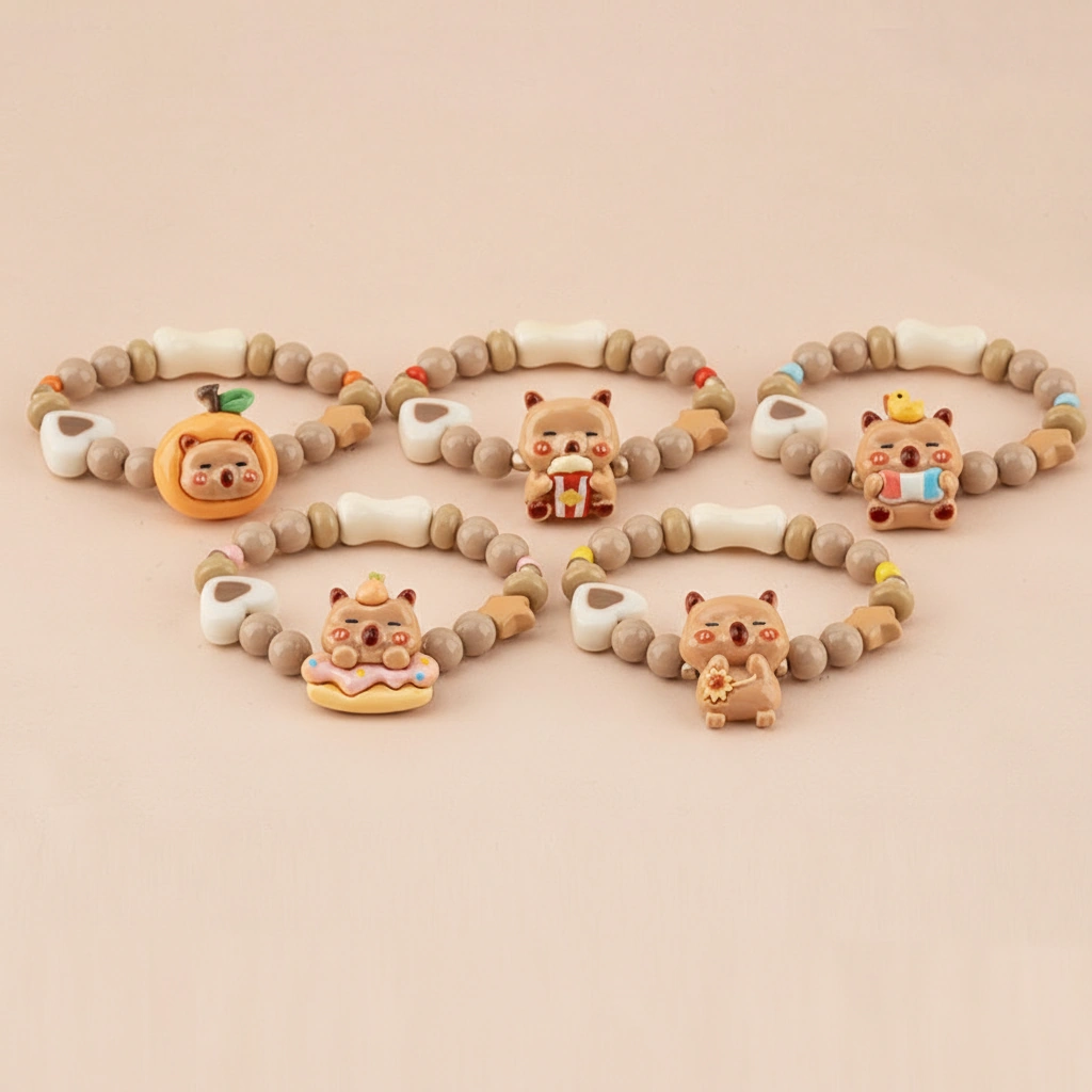 Brighten up any young outfit with this vibrant series of beaded bracelets. Designed with a fun and youthful spirit, these accessories capture the relaxed charm of the capybara in five distinct, glossy styles. Whether it’s for a birthday gift or a daily treat, these stretchable bands offer a cheerful pop of personality.