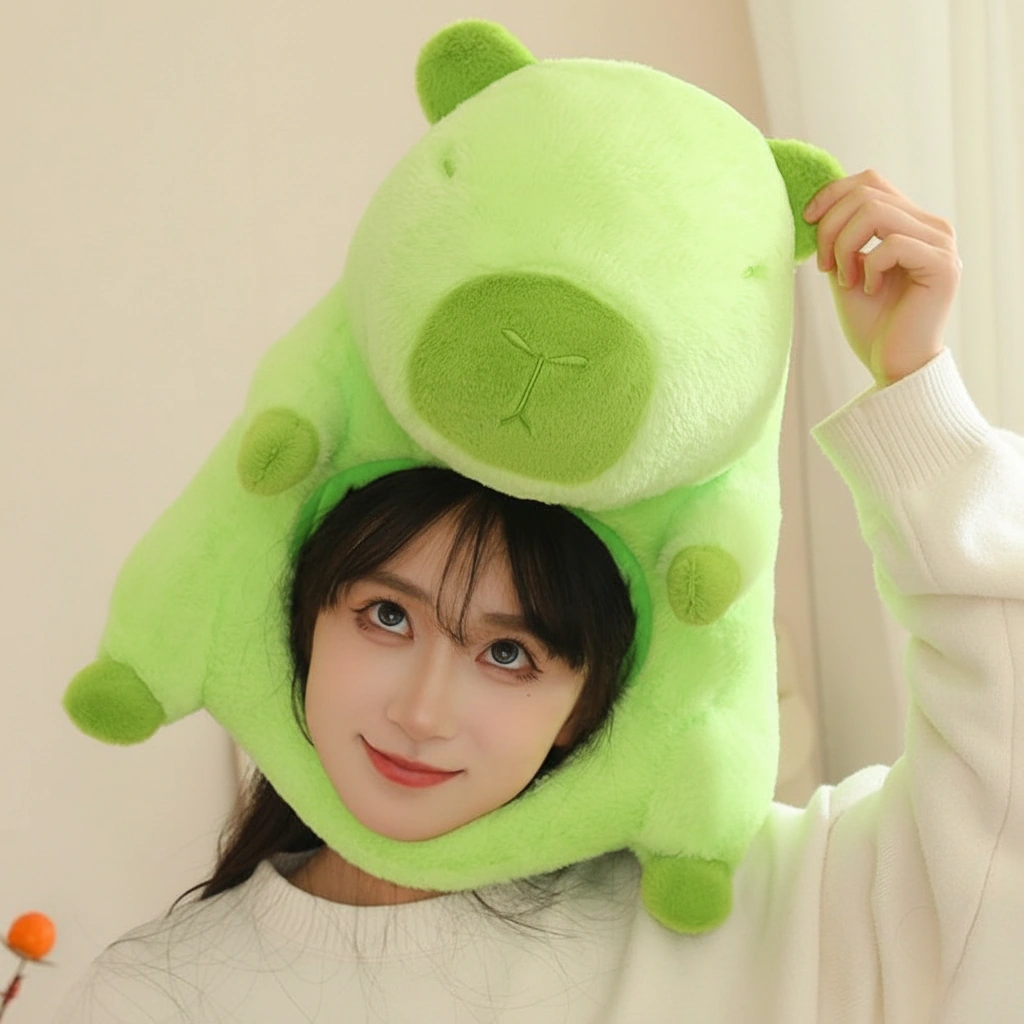 Capybara Plush Hat – Funny Winter Headwear – Brown & Green