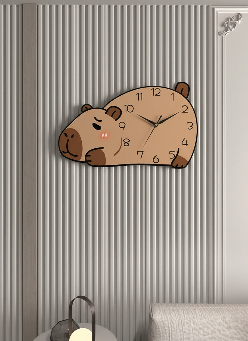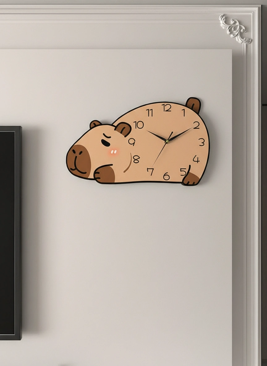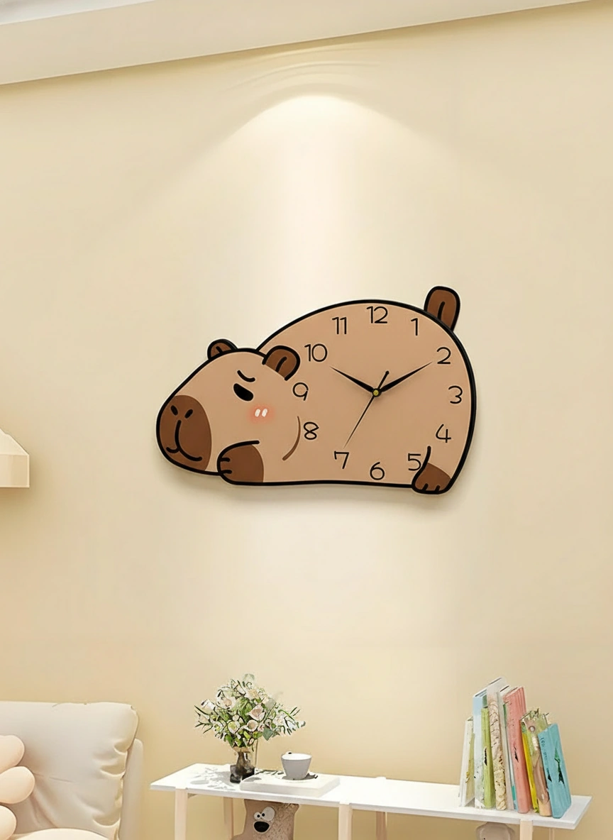 Cute Capybara Wall Clock with Wagging Tail – Lying Down Pendulum Decor (40x25cm)