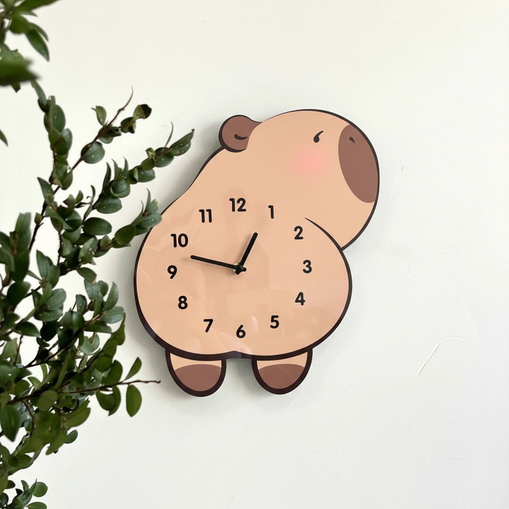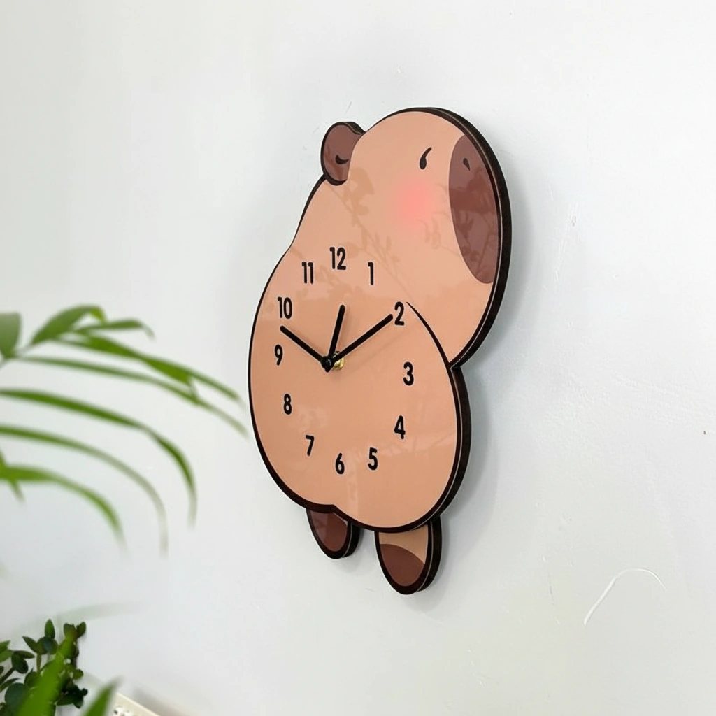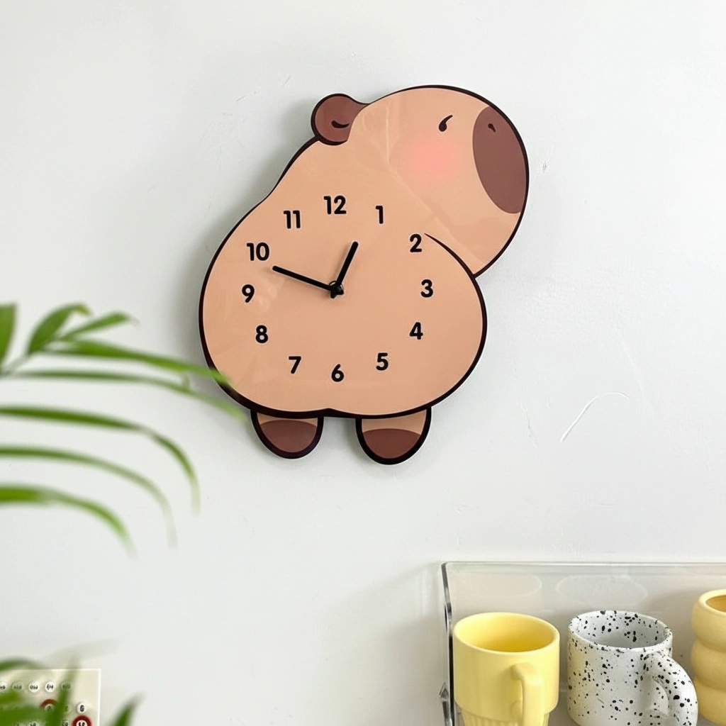 Capybara Wall Clock with Swinging Legs – Creative Pendulum Decor (30x34cm)