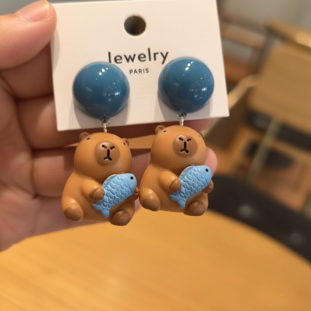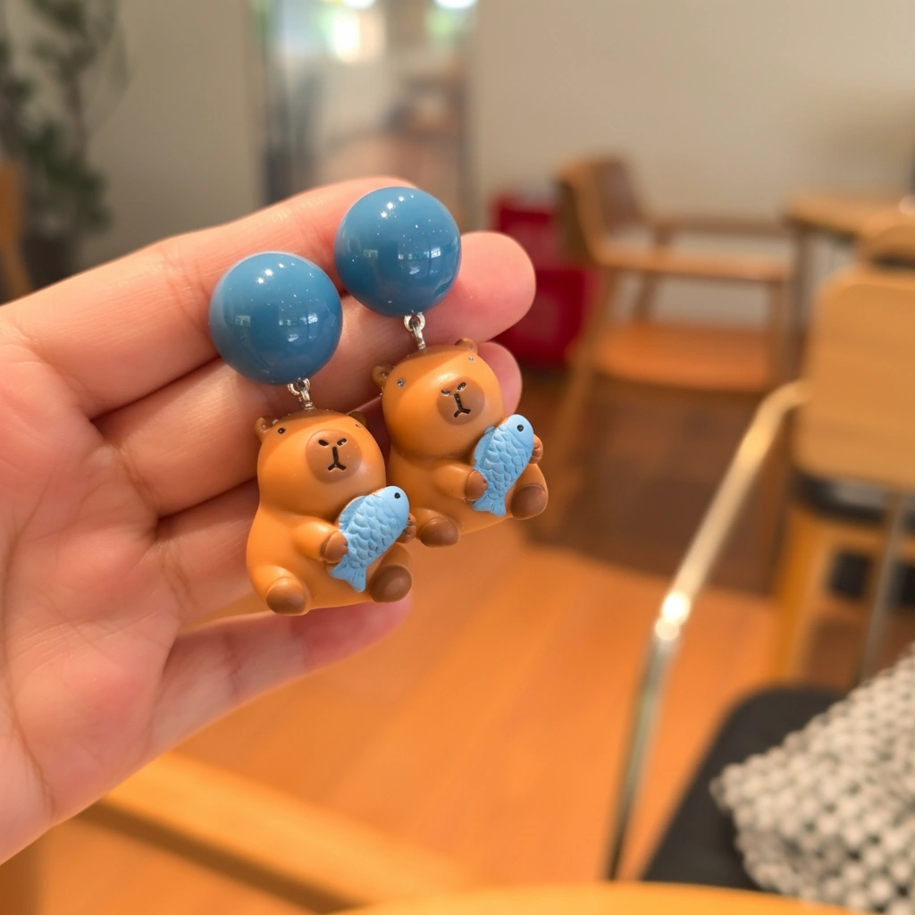 Be the first to review “Kawaii Capybara Hugging Fish Earrings”