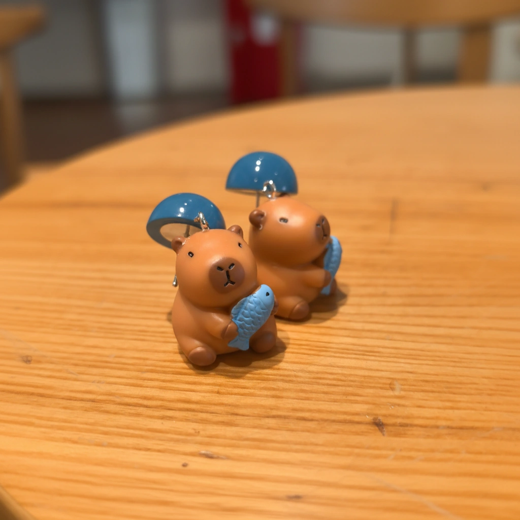 Kawaii Capybara Hugging Fish Earrings