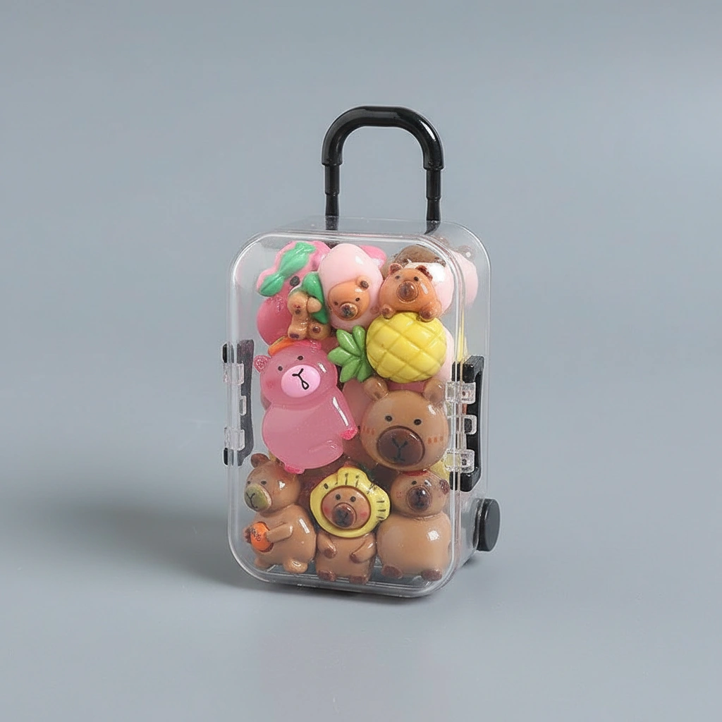 These miniature companions are designed to be portable and fun. The clear suitcase allows you to showcase your collection while keeping them organized, making it a perfect addition to any capybara-themed display.