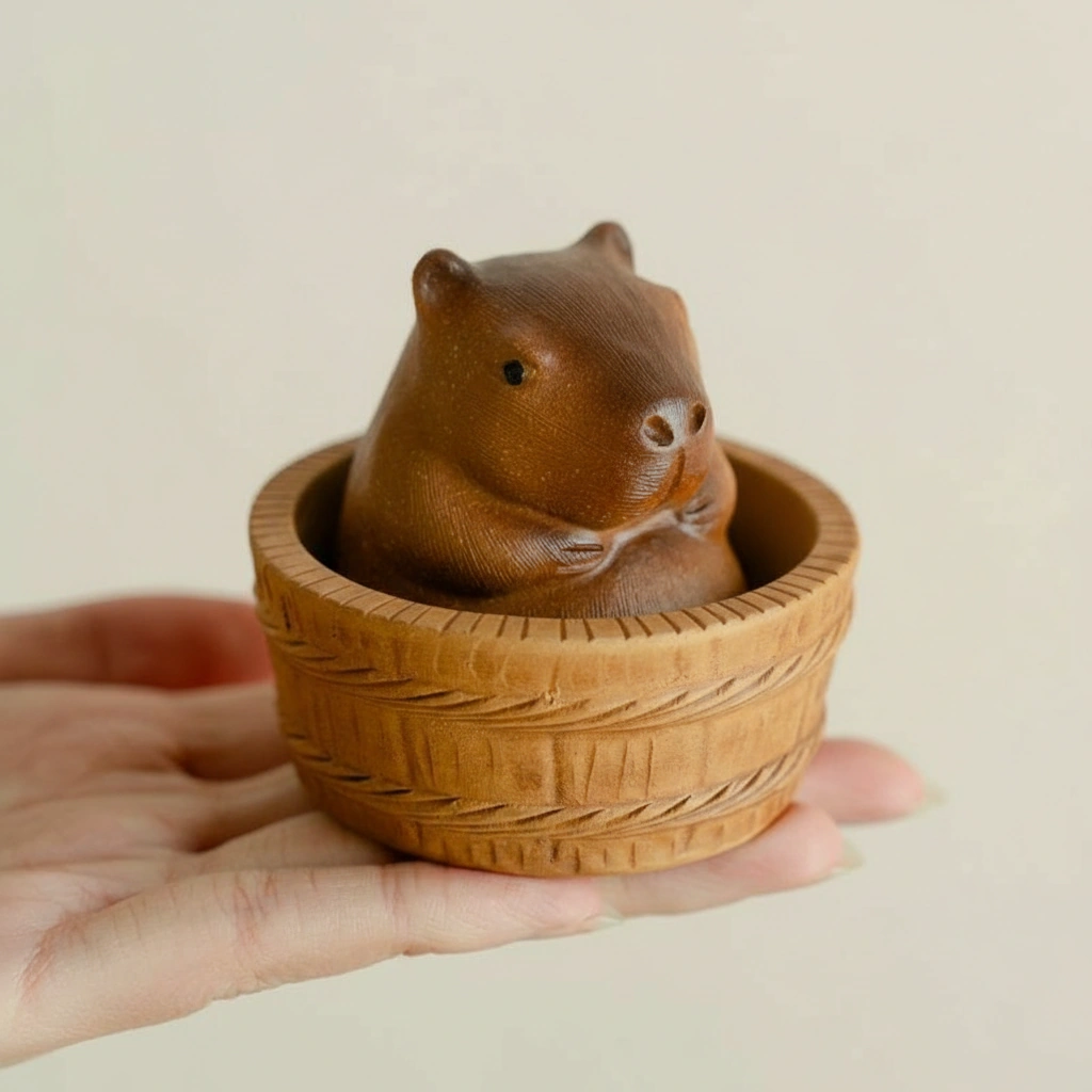 Experience the perfect blend of traditional Chinese tea culture and the world’s most relaxed animal. This capybara mini figure is meticulously crafted from authentic Purple Clay (Zisha), a material prized by tea connoisseurs for its unique ability to “season” over time. As you pour tea over your new companion, the clay absorbs the oils, developing a rich, soulful luster that reflects years of peaceful tea sessions.
