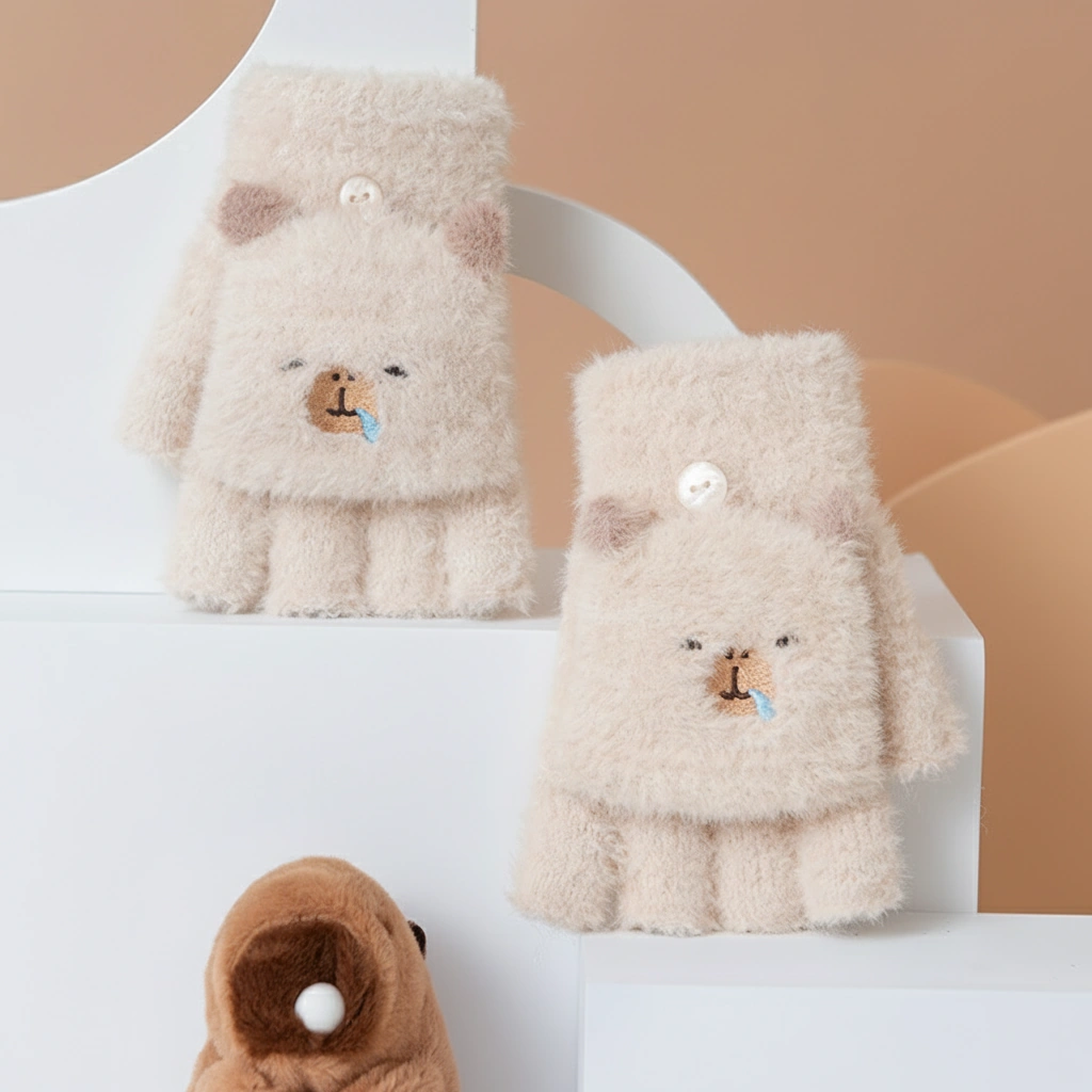 Stay Warm While You Study or Scroll Older kids and teens need winter gear that keeps up with their busy schedules. These Youth Fuzzy Capybara Flip-Top Gloves offer the perfect balance of humor and utility. Designed specifically for the 8-16 age range, they fit slightly larger hands and provide the flexibility needed for writing in chilly classrooms, typing on laptops, or texting friends outdoors.