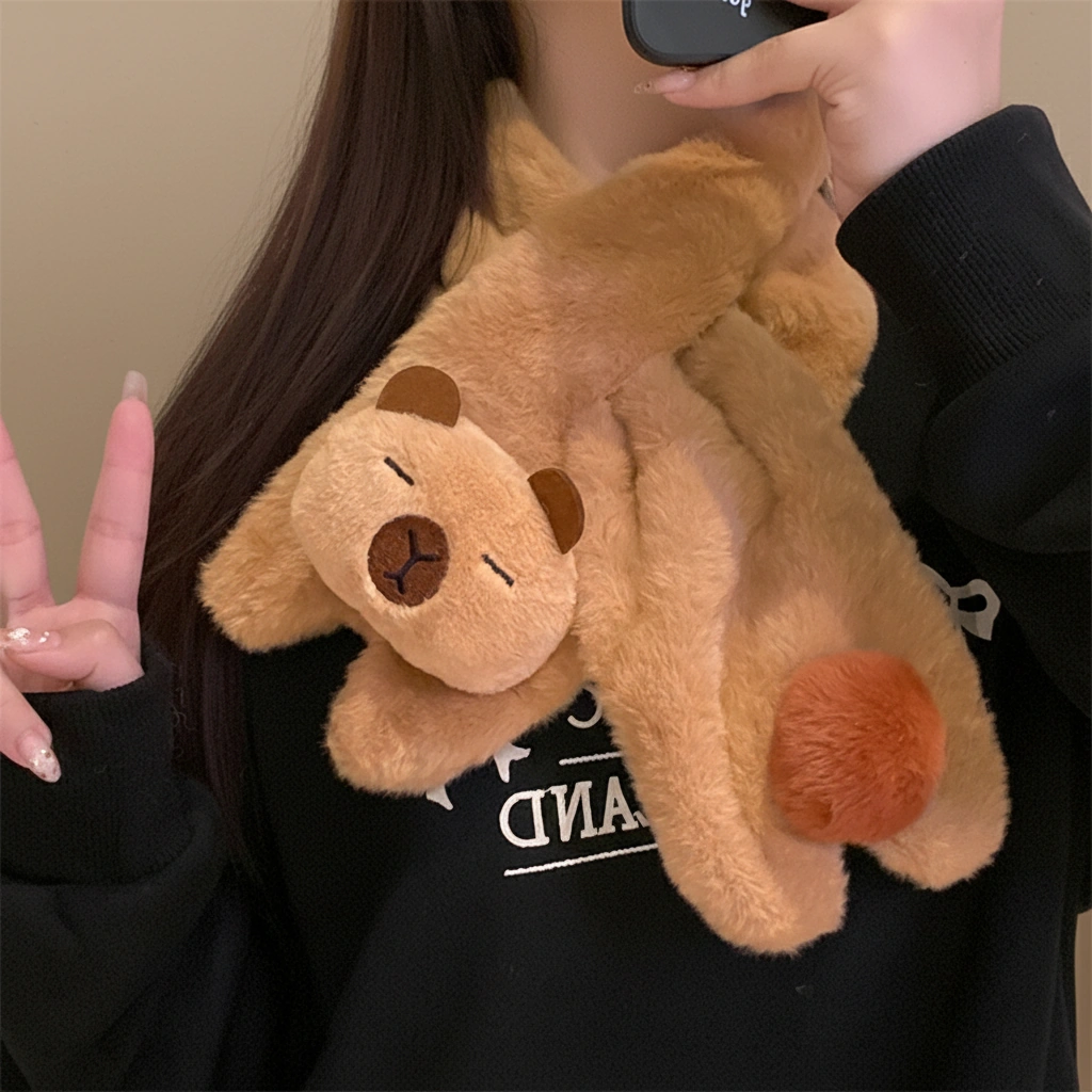 - Smart Scarf Design: The scarf features a convenient cross-through (pull-through) style. Simply tuck the plush capybara tail end through the loop behind the head for a secure fit that stays in place all day.