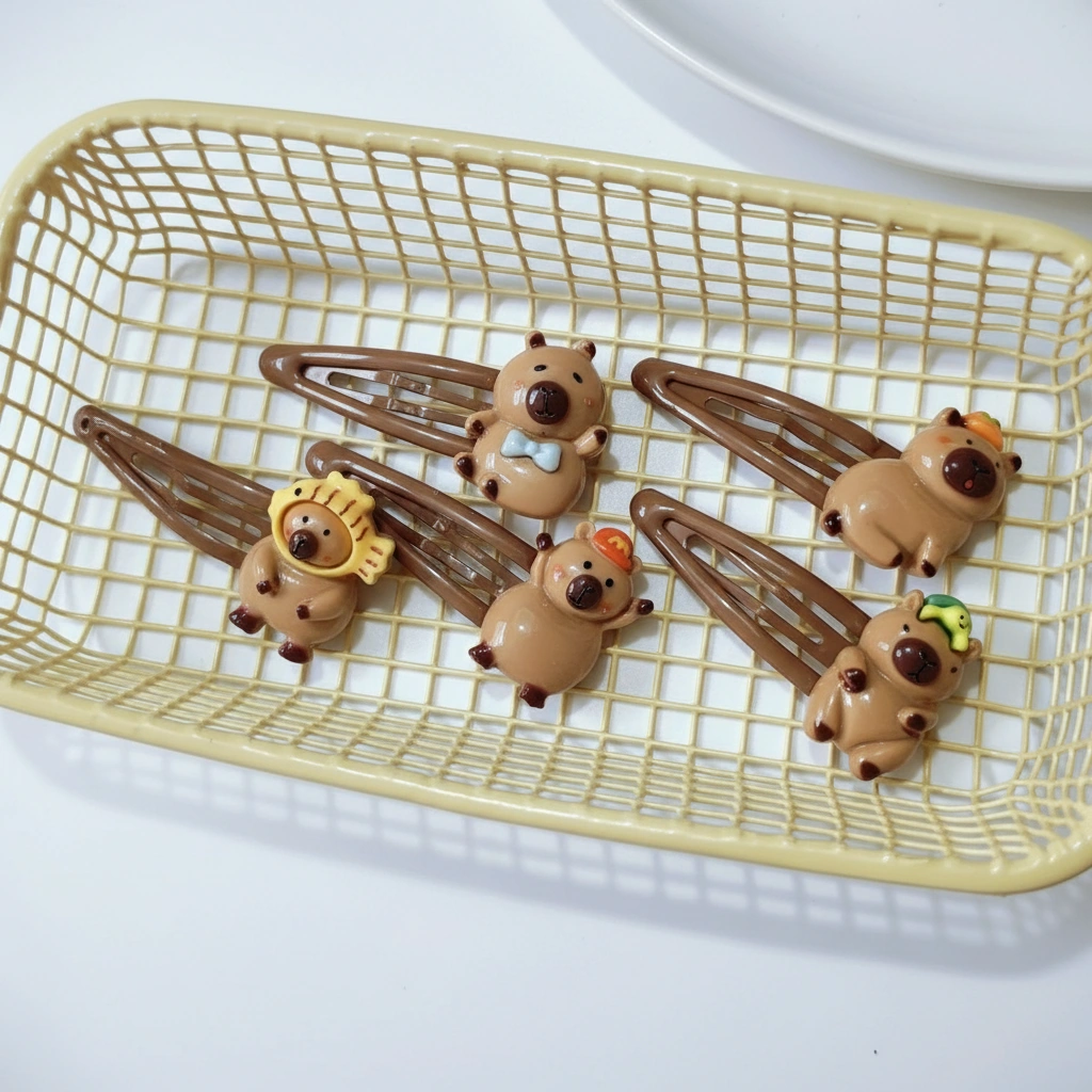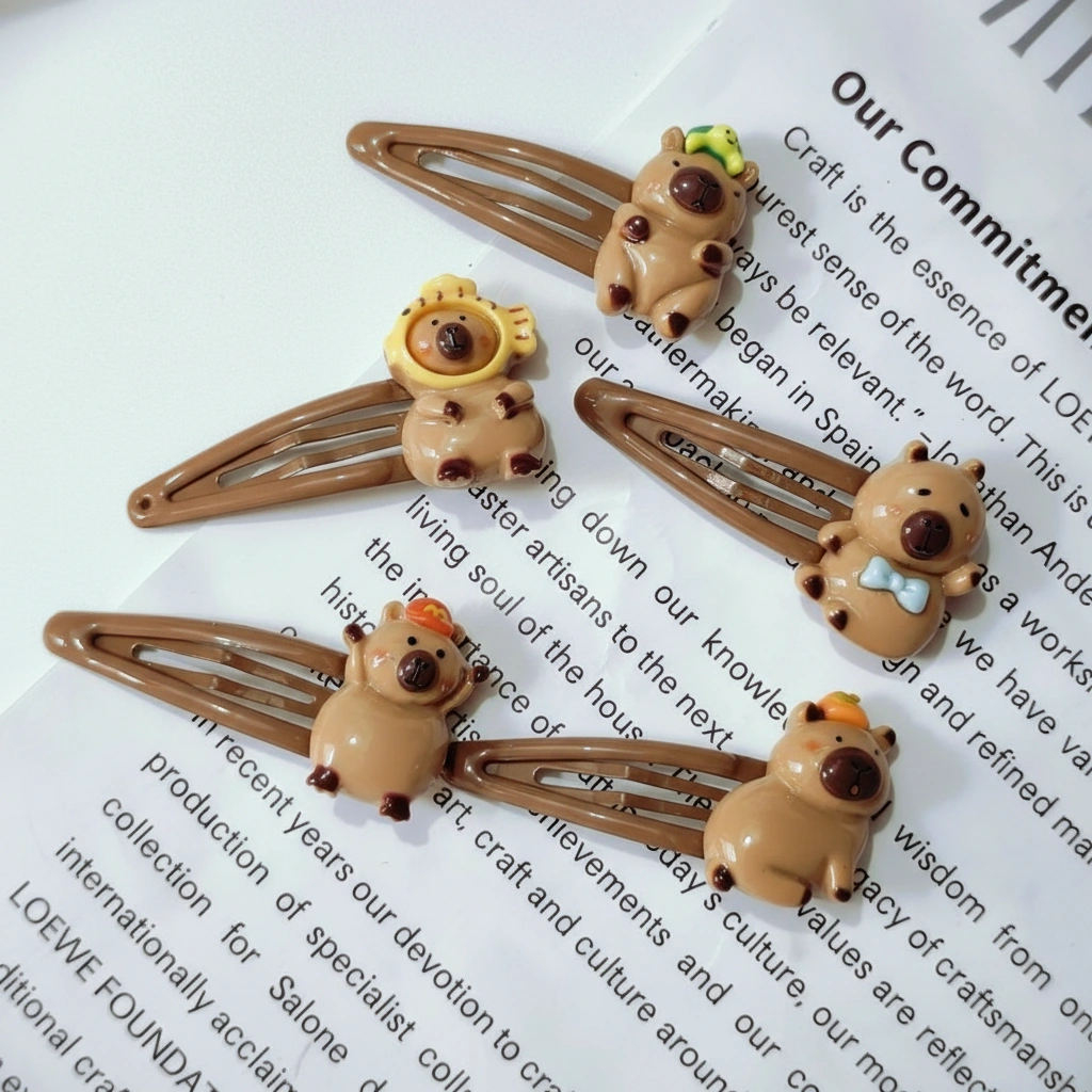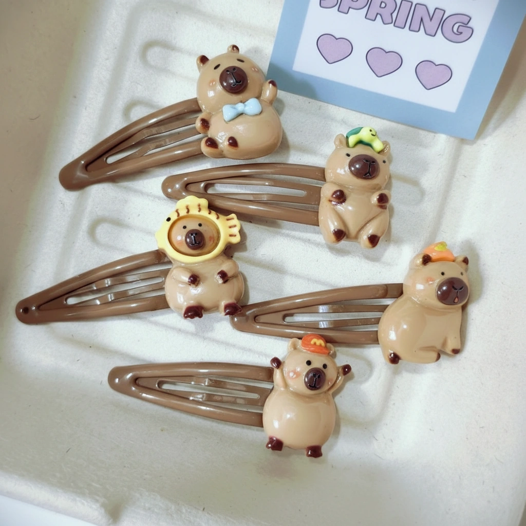 This set is ideal for a more integrated aesthetic. The brown clip base is less visually distracting than silver or white alternatives, making it a subtle yet fun addition to school outfits, work attire, or casual weekend wear. It combines the reliability of a traditional barrette with the undeniable charm of the capybara world.