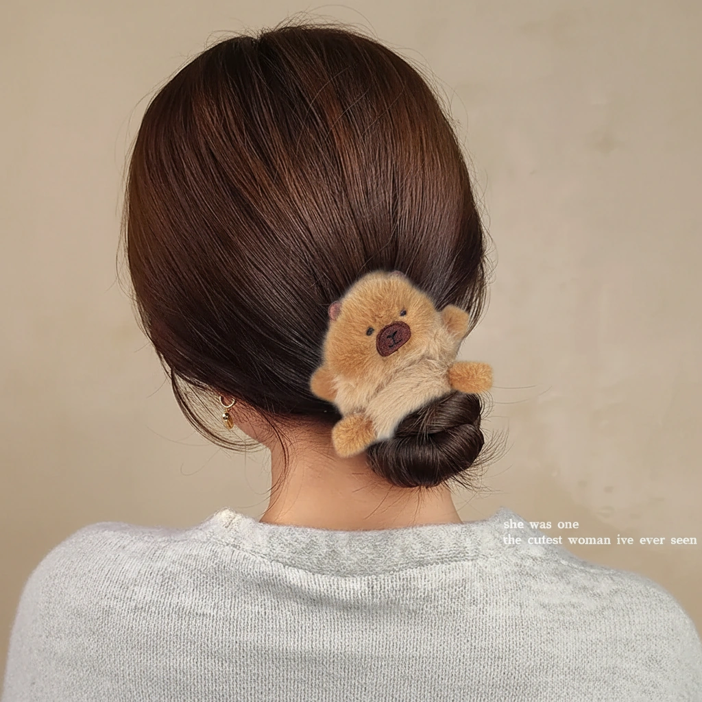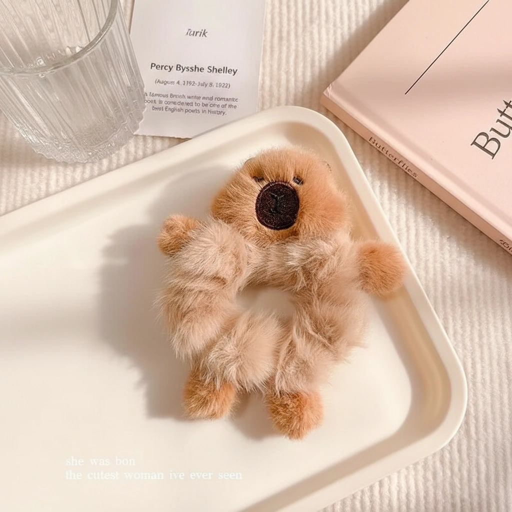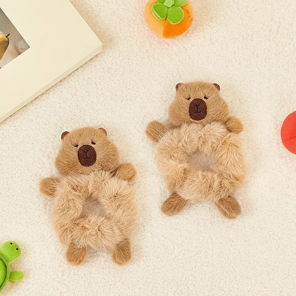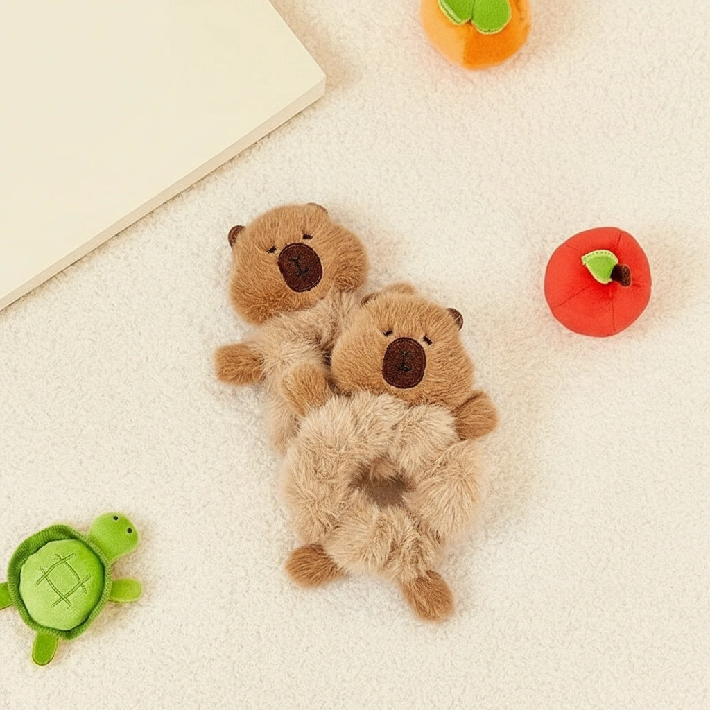 Add a dose of affection to your hairstyle with this unique Hugging Capybara Scrunchie. While standard hair ties are functional, this plush accessory is designed with a full-body character concept. It features tiny, stuffed limbs that extend outward, creating the adorable illusion that the capybara is holding onto your ponytail for dear life—or giving your wrist a warm hug when worn as a bracelet.