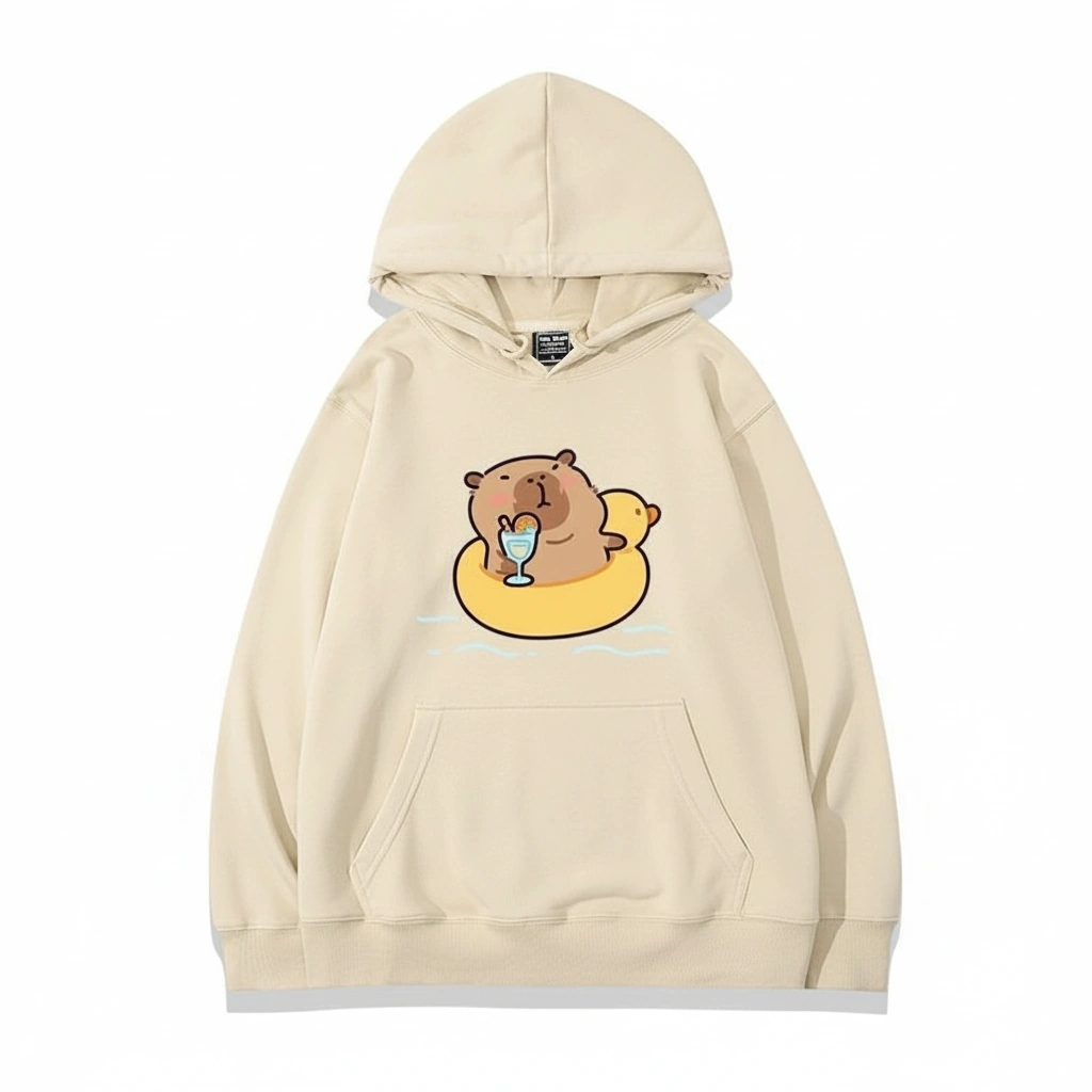 Who needs a vacation when you can just dress like one? This Capybara Duck Floatie Hoodie brings the ultimate summer vibes straight to your wardrobe. It captures the capybara in its natural habitat: absolutely unbothered, floating on water, and living its best life.