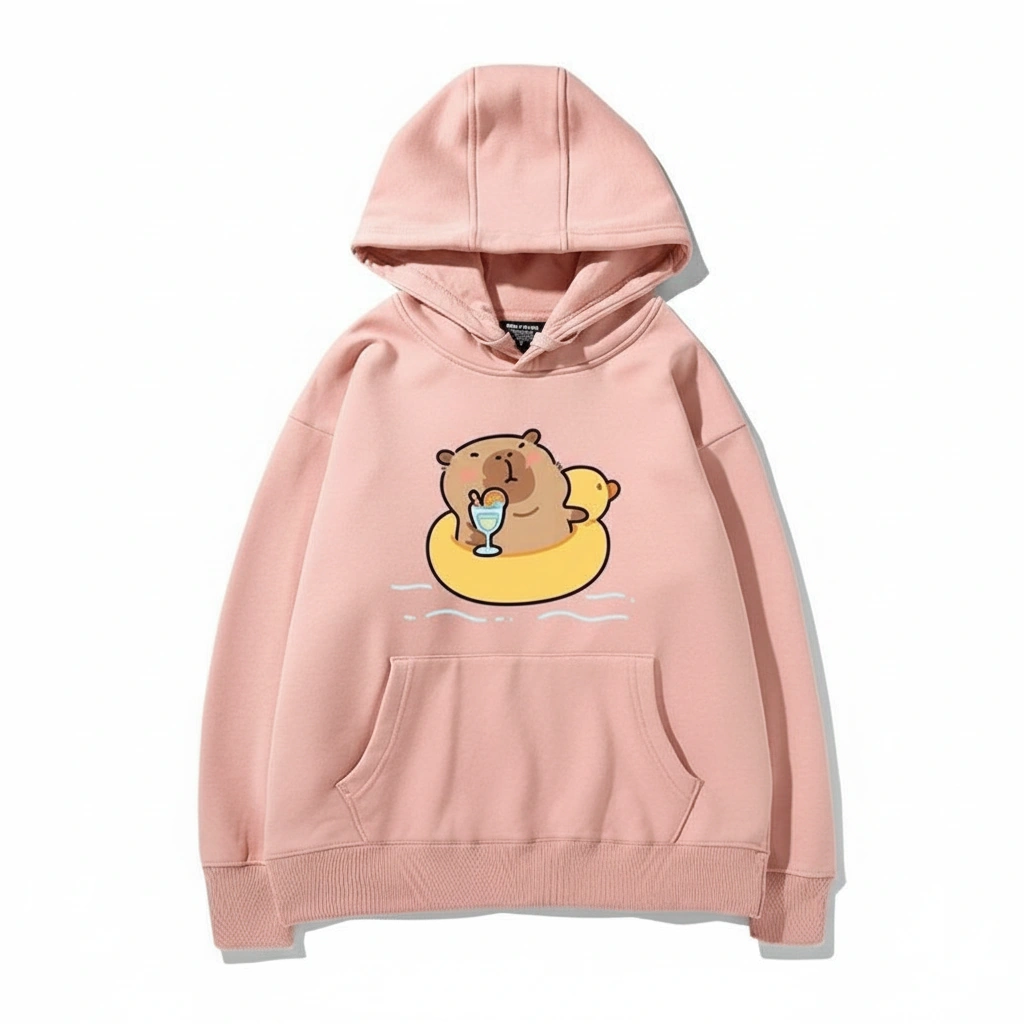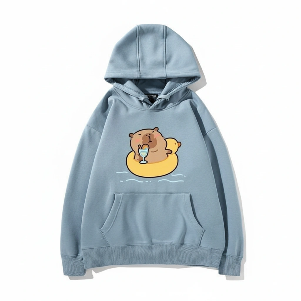 Capybara Duck Floatie Hoodie – Cute Summer Pool Party Graphic Pullover (4 Colors)