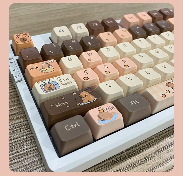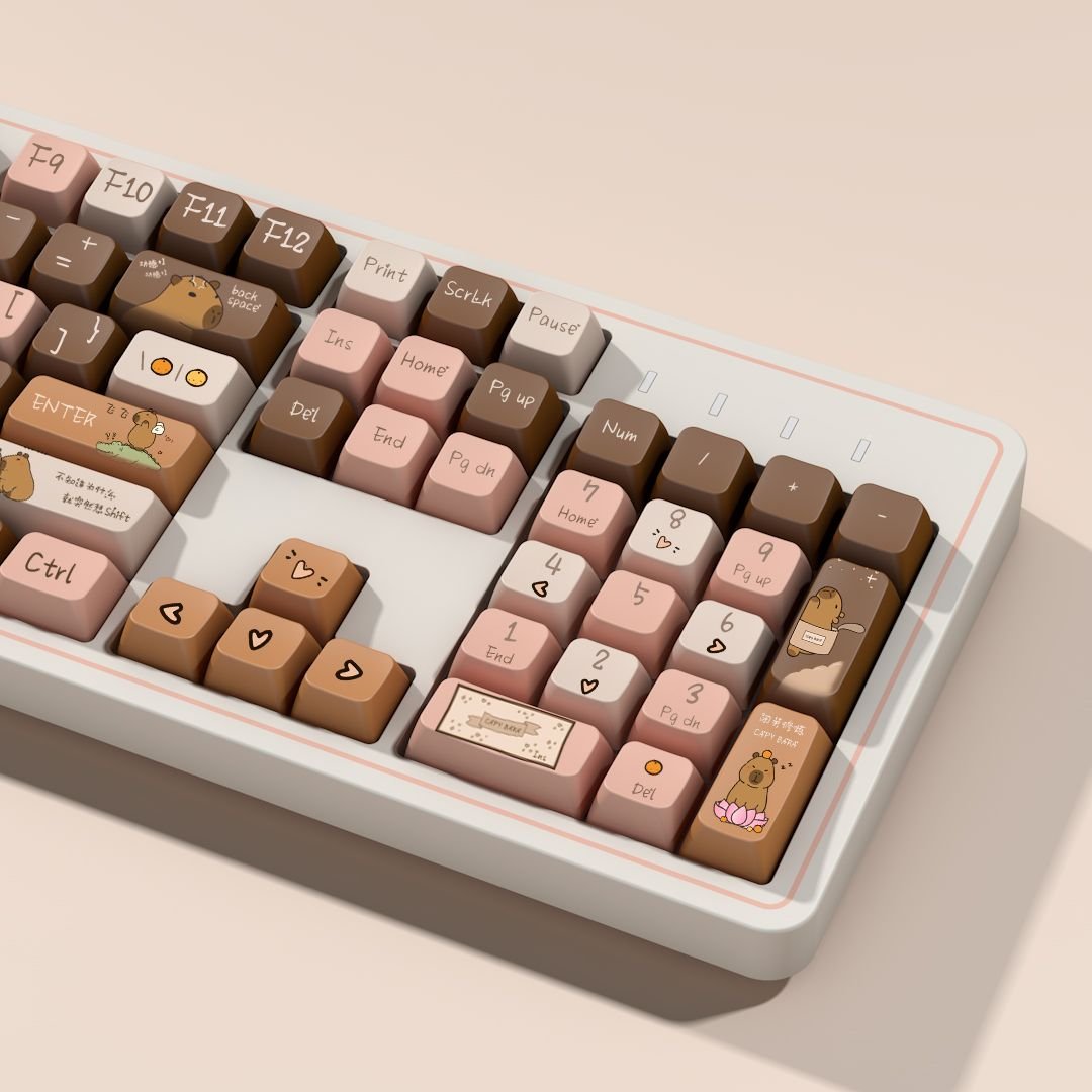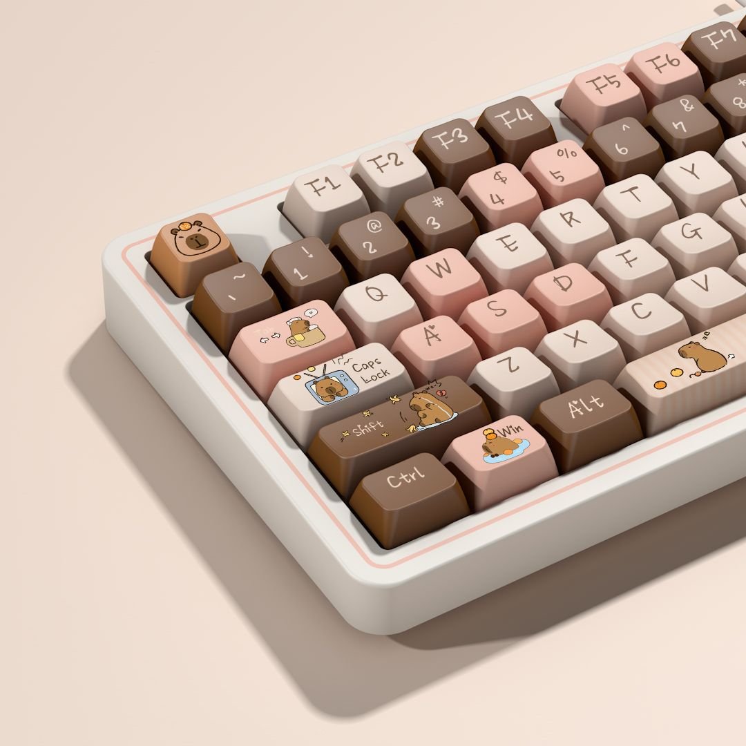 Cozy Coffee Capybara Keycap Set (134 Keys) – MDA Profile PBT for Mechanical Keyboards