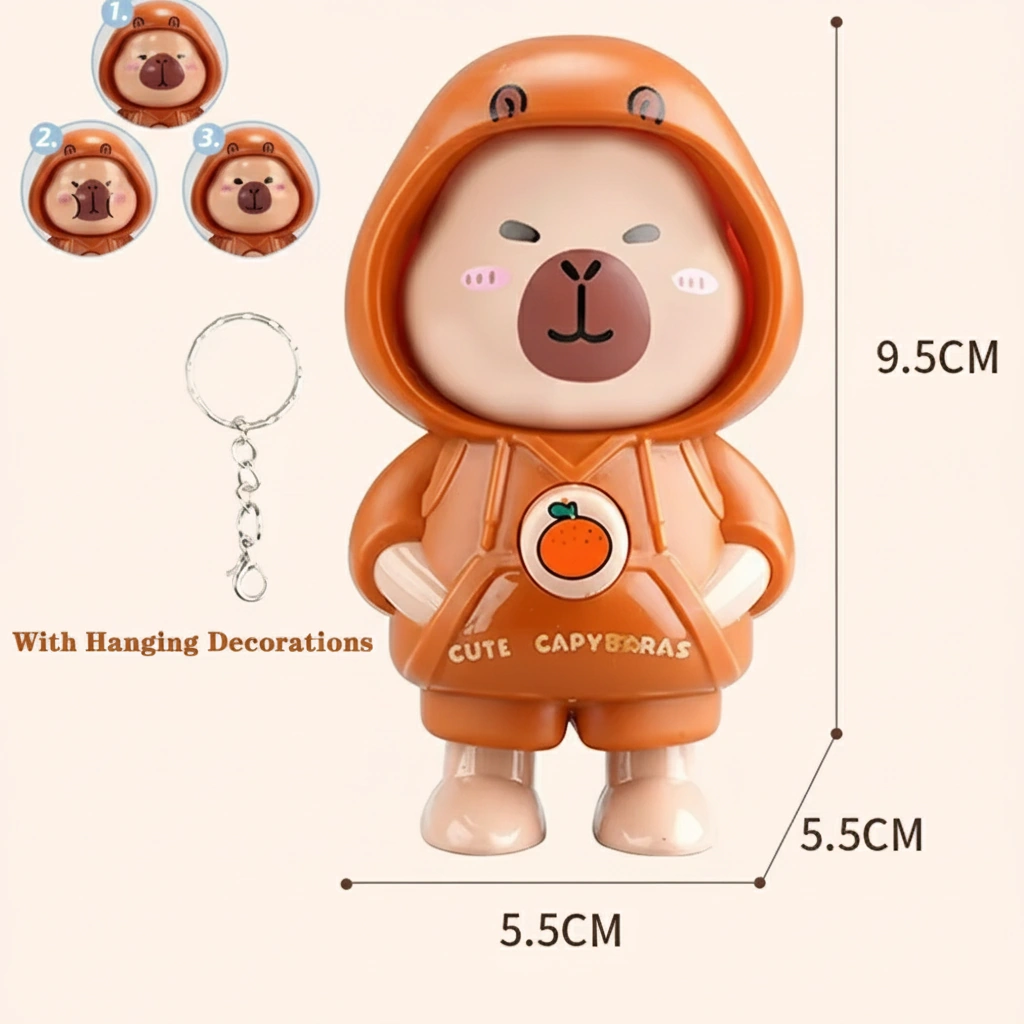 Face Changing Capybara Keychain | Interactive Fidget Toy | 3 Expressions in 1 (PVC)