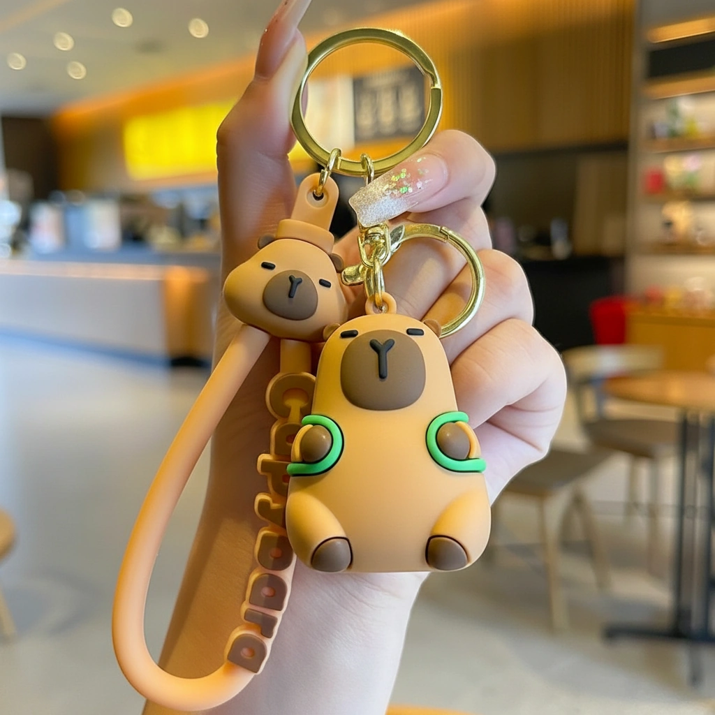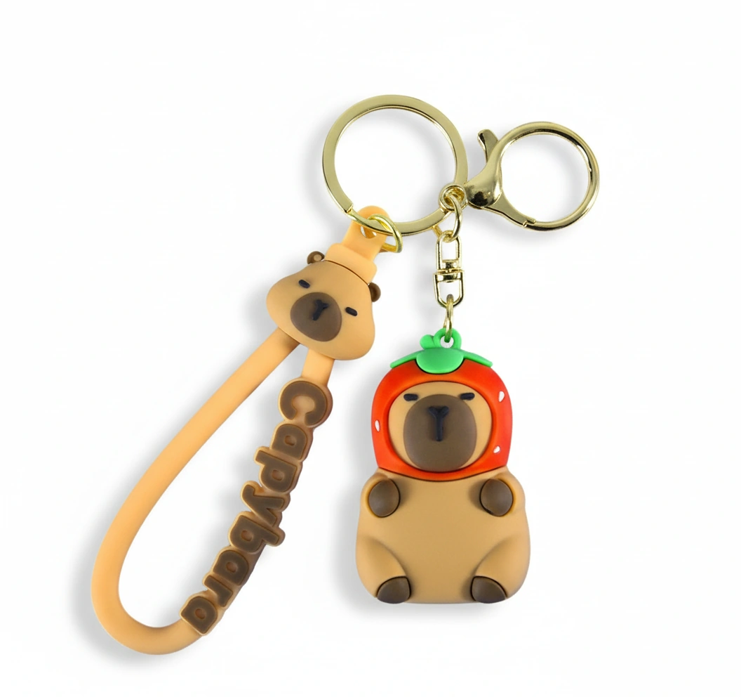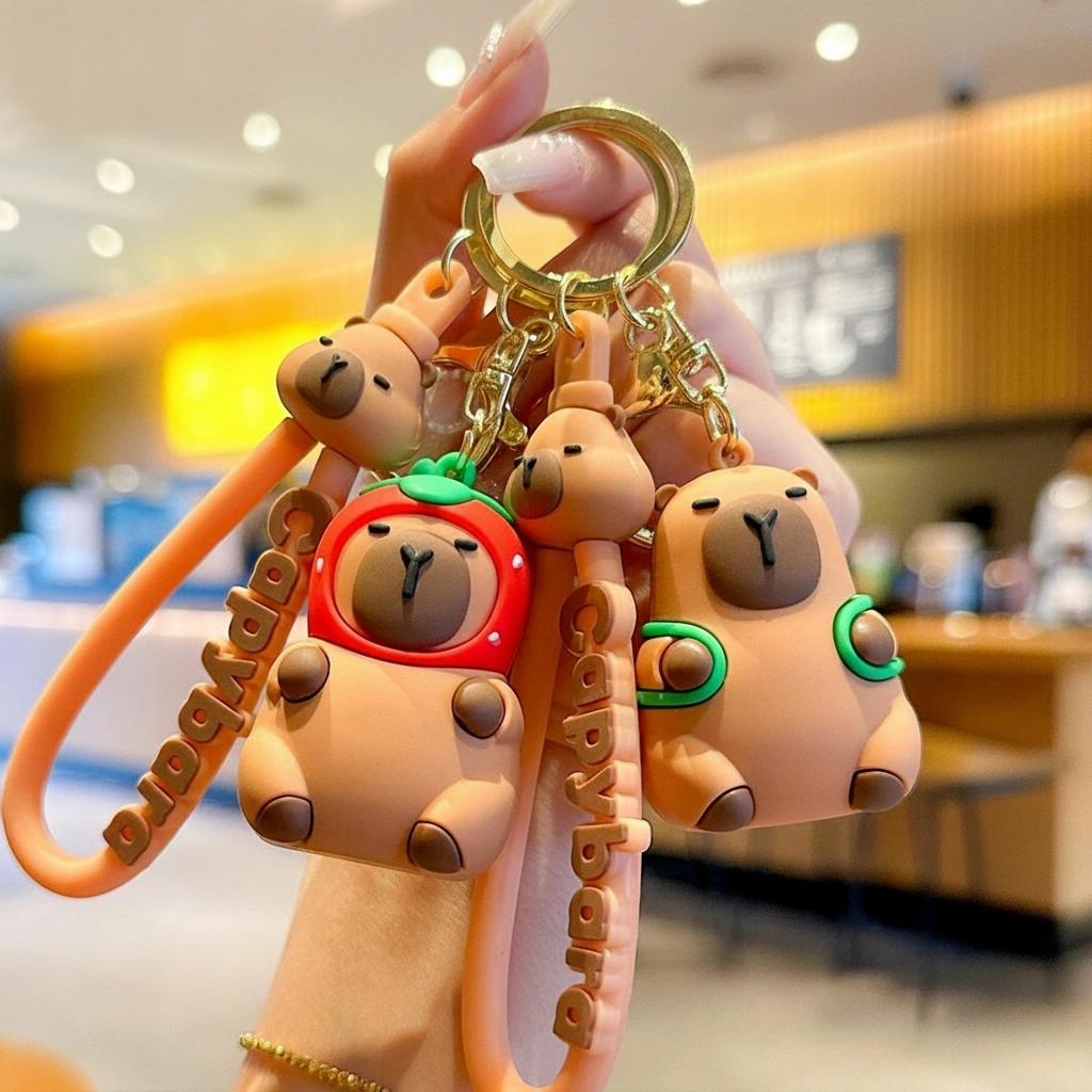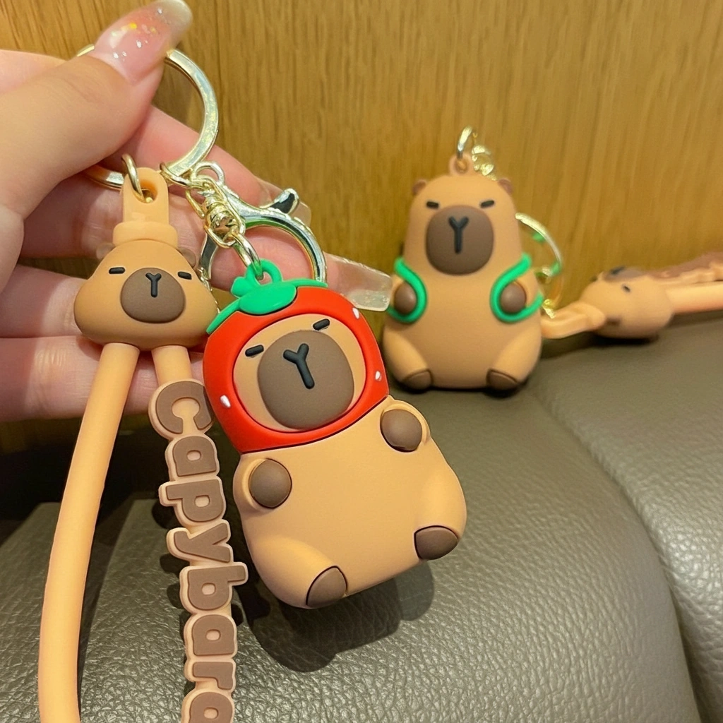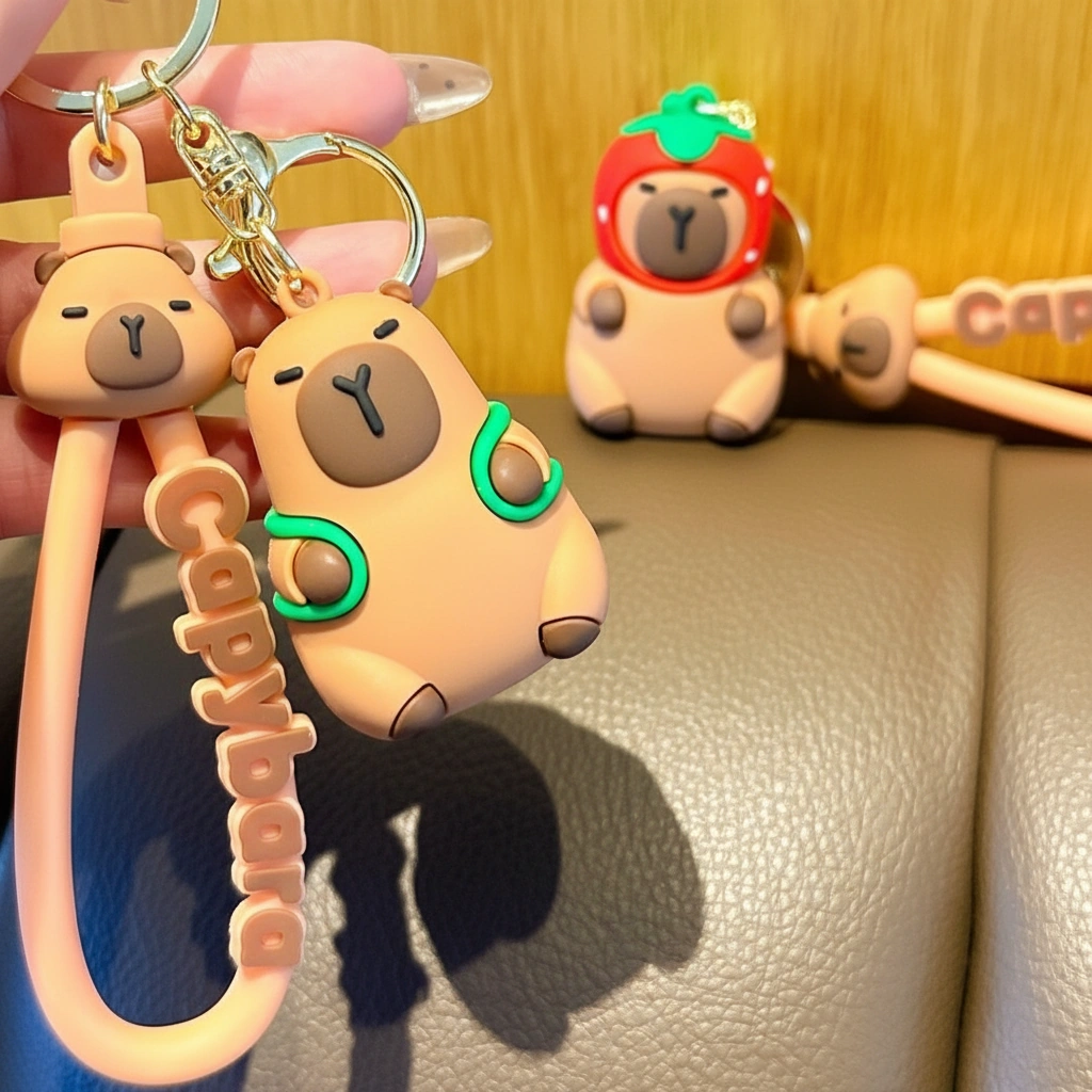 - Matching Strap: Each keychain comes with a color-coordinated silicone strap featuring the “Capybara” text and a mini capy head detail.