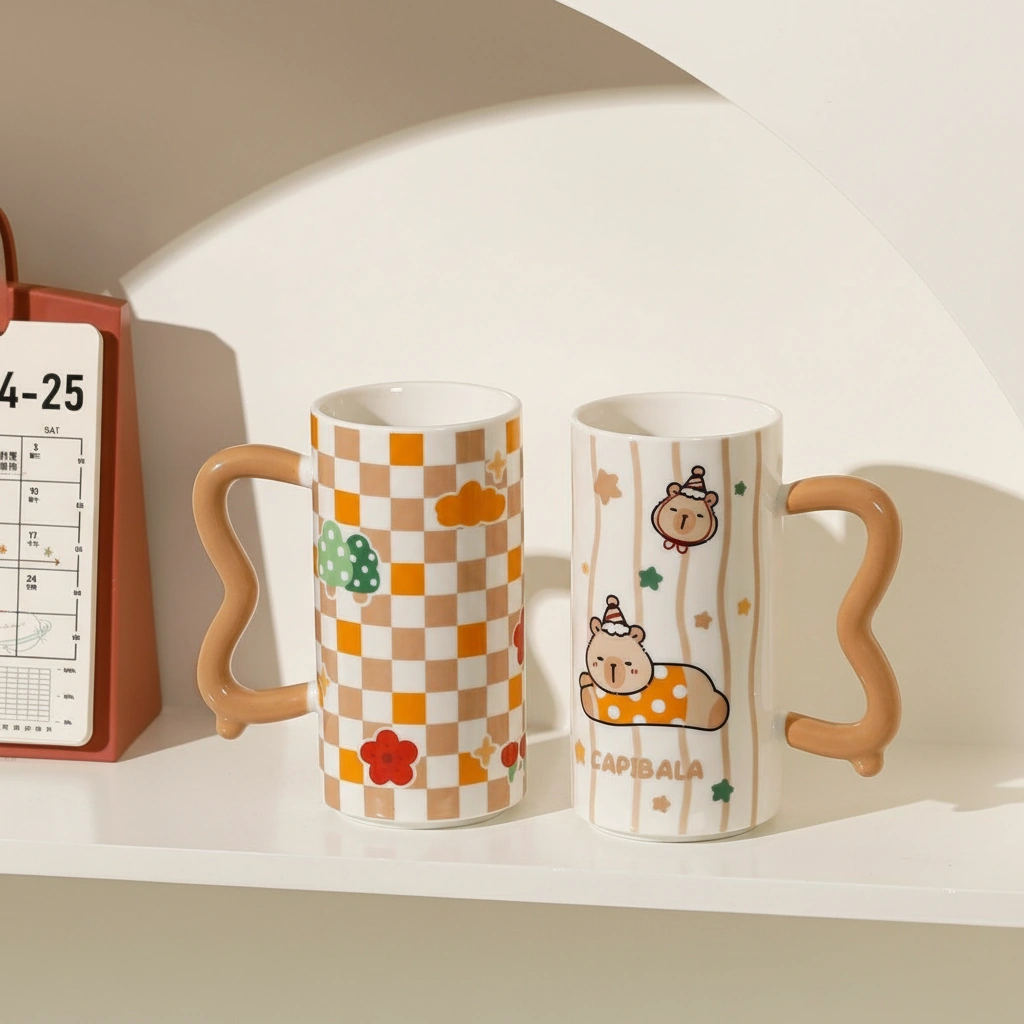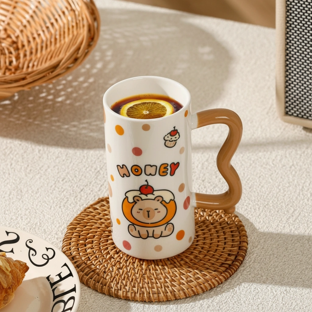 Every capybara coffee cup is made from premium, smooth-glazed ceramic that feels substantial in your hand. The most unique feature is the sculpted wavy handle, which offers a comfortable grip and a modern, artistic touch to the traditional coffee mug shape.