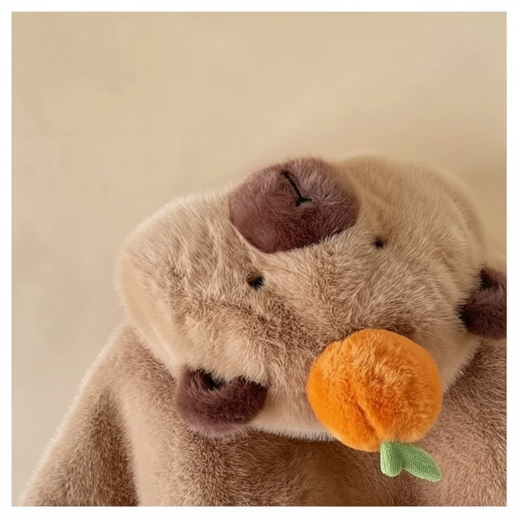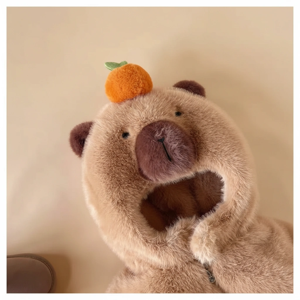 - 3D Character Hood: The hood is the star of the show, featuring a stuffed capybara snout, cute round ears, and the signature 3D orange (yuzu) balancing on top.