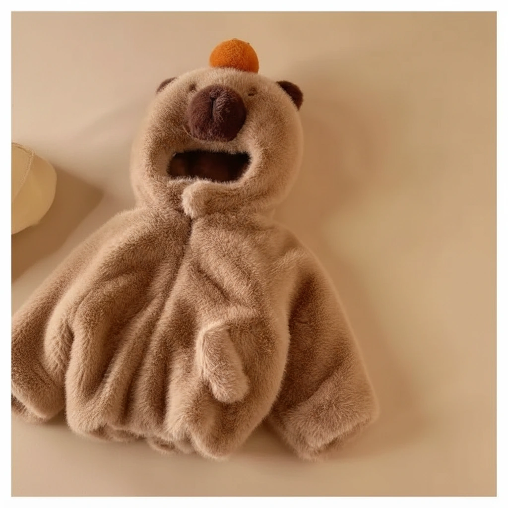 Transform your child into the world’s most chill animal with this incredibly soft kids’ capybara coat. Unlike standard pajamas, this is a standalone outerwear jacket made from ultra-dense, faux-fur plush that feels just like hugging a real stuffed animal. It is the perfect statement piece for winter walks, costume parties, or just staying cozy.