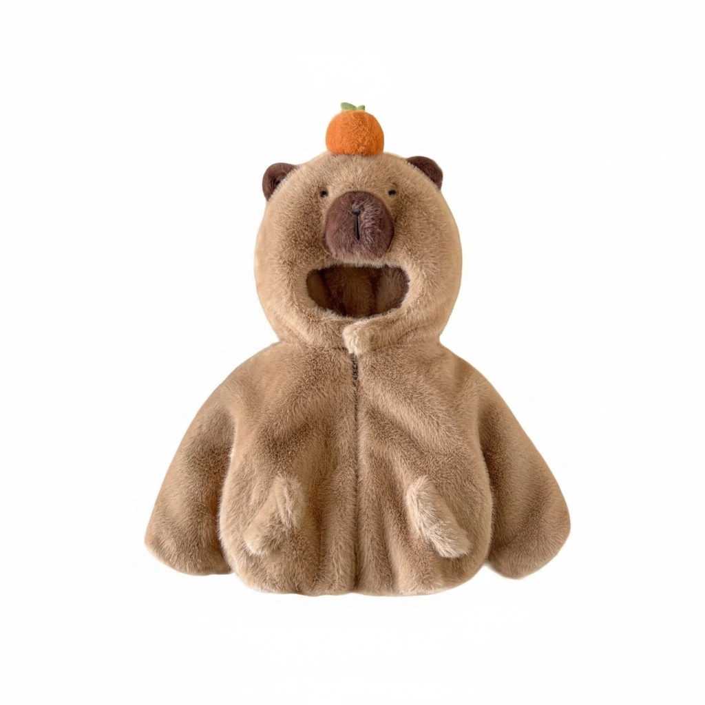 Kids Capybara Hooded Coat – Fluffy Plush Jacket with 3D Orange (Outerwear)