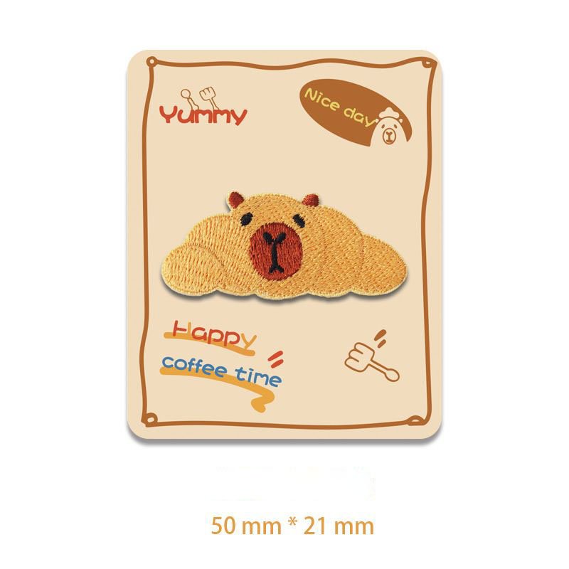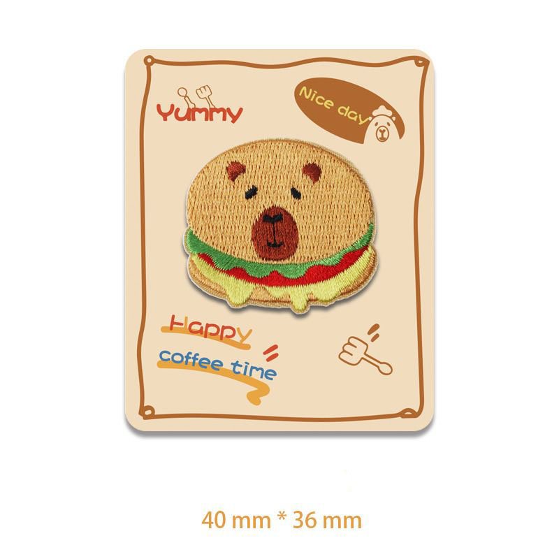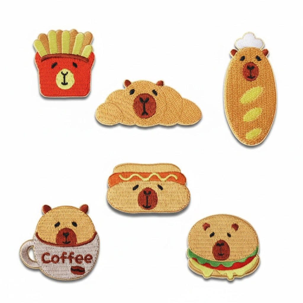 Foodie Capybara Stick-On Patches (6 Styles) – Cute Embroidered Snack Badges