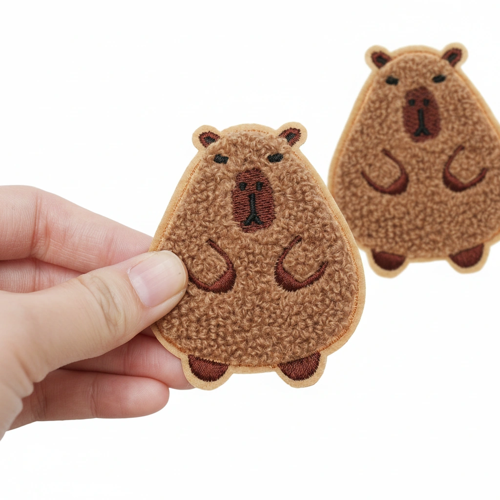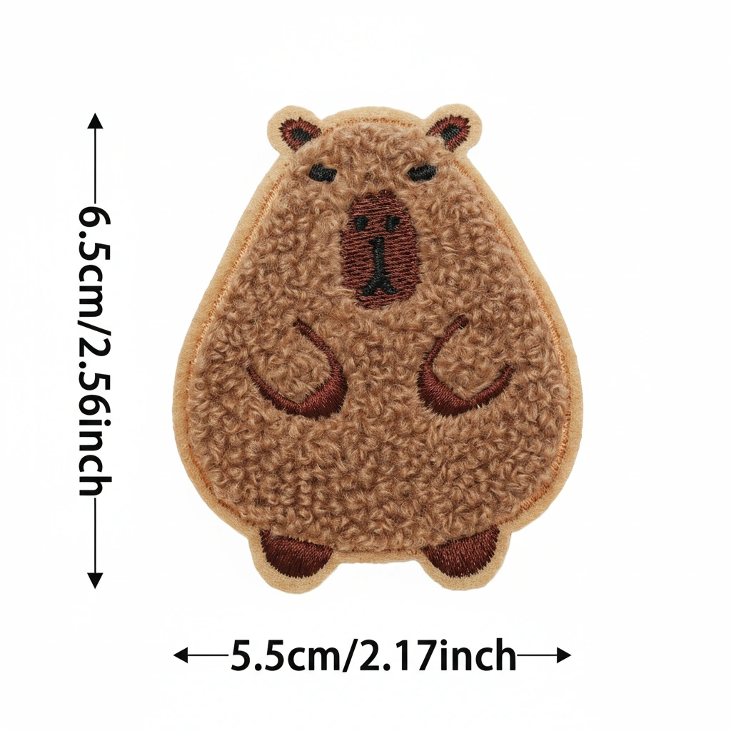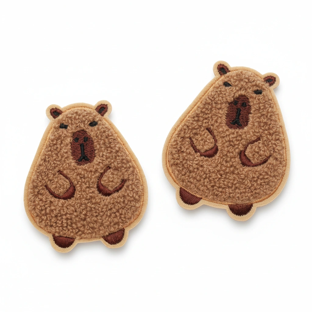 Fuzzy Chenille Capybara Patch (2 Pack) – Cute Sew-On Embroidered Badge for DIY