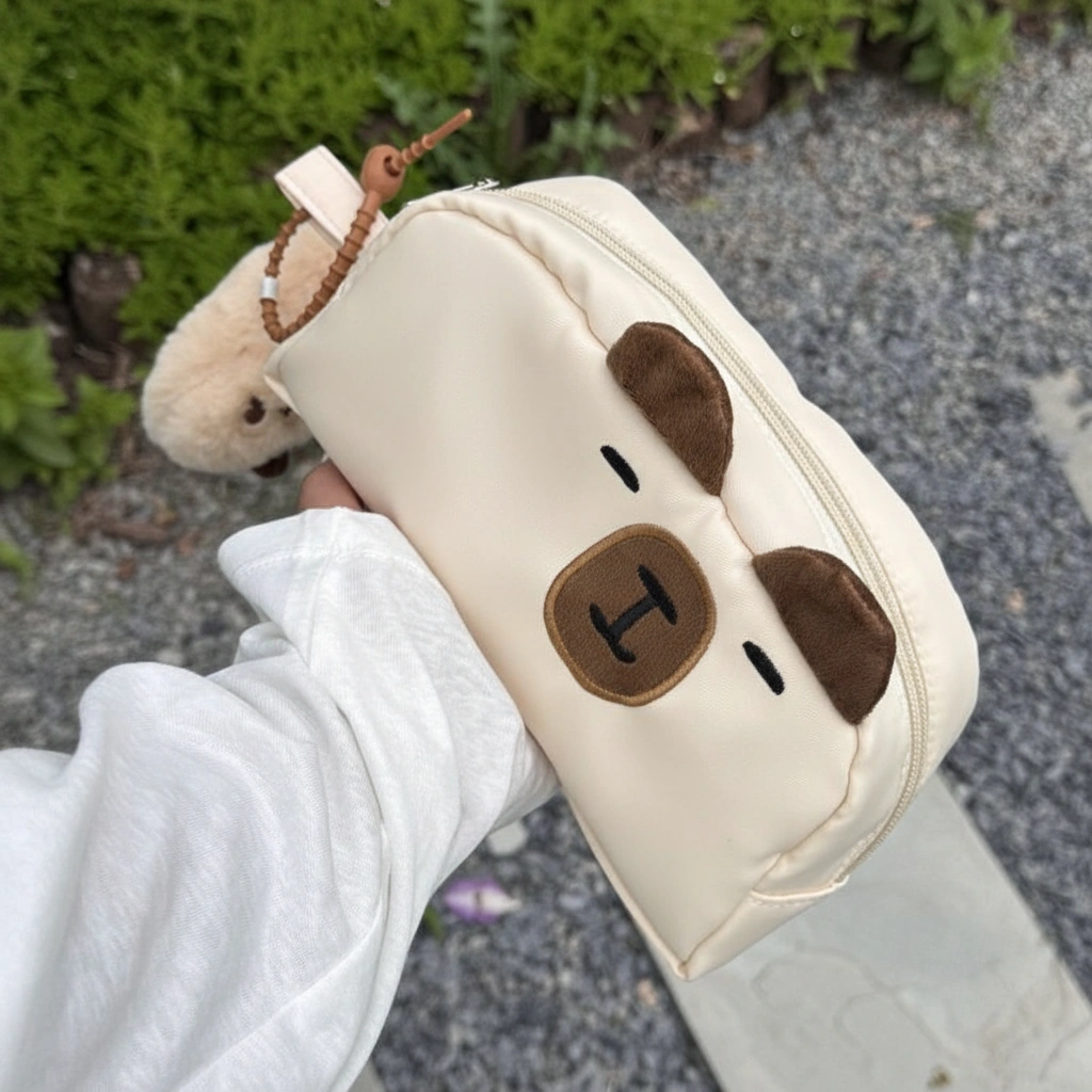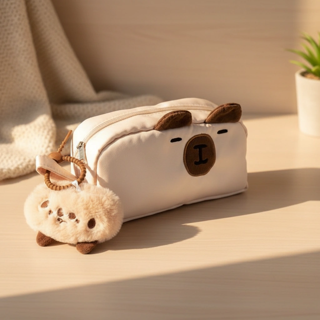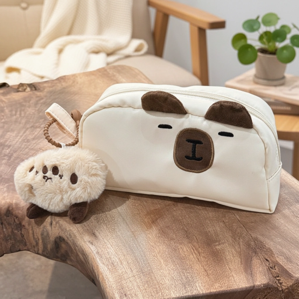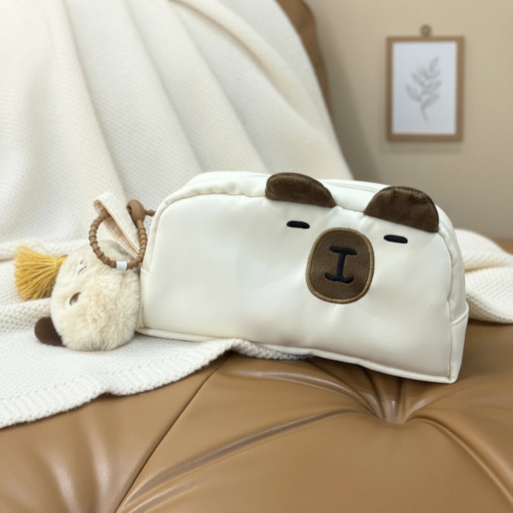 The “Clean Girl” Aesthetic, Capy-Style Minimalist, creamy, and oh-so-soft. This Capybara Makeup Bag is the ultimate organizer for those who love a clean aesthetic but still want a touch of cute character. Whether you are storing your daily makeup essentials, skincare travel minis, or a large collection of aesthetic highlighters, this pouch keeps it organized in style.